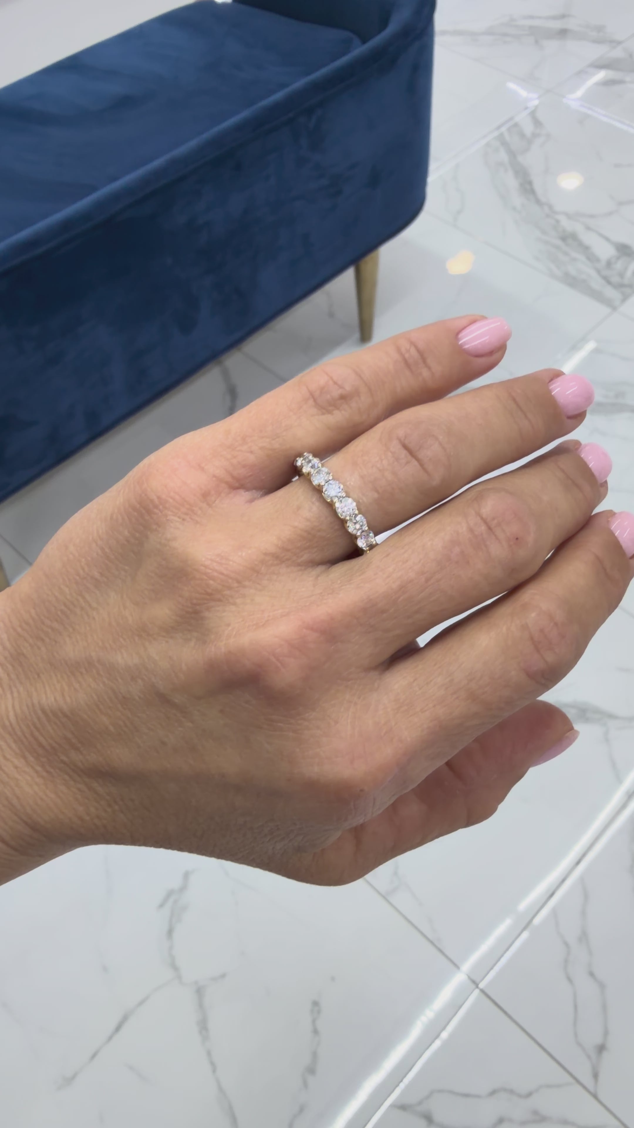 10K Rose Gold 1.31ct Lab Grown Diamond 9 Across Half Eternity Wedding Band Ring