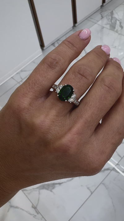 One (1) natural, oval-shaped, brilliant-cut green tourmaline: