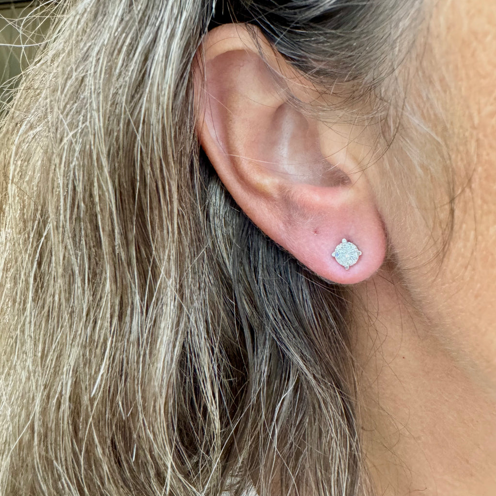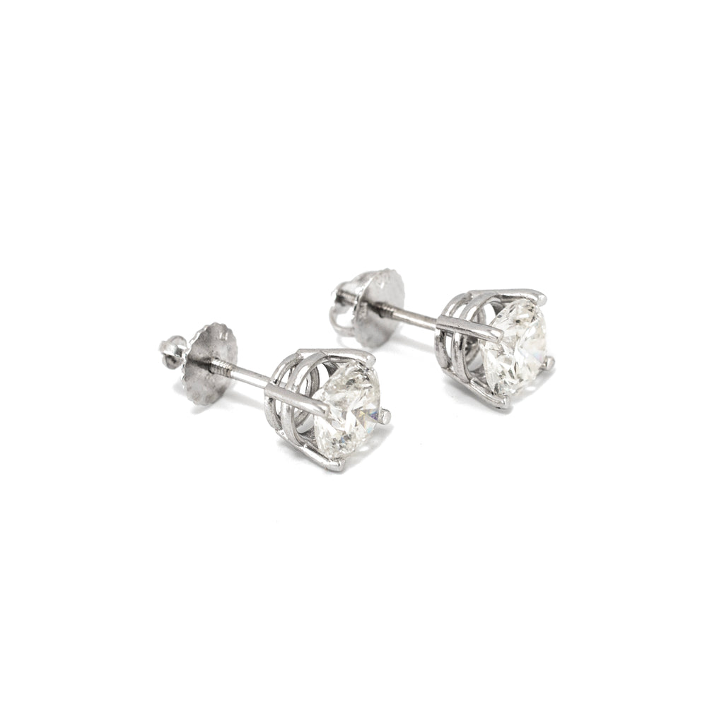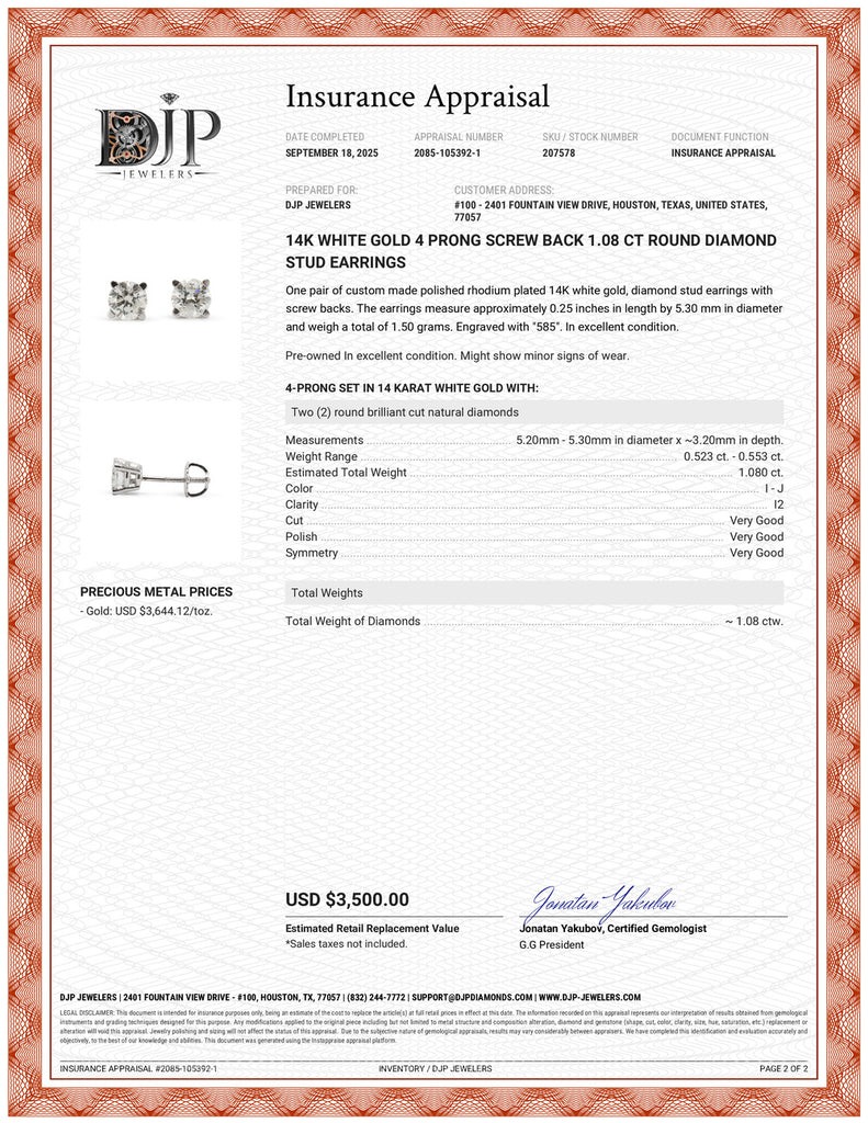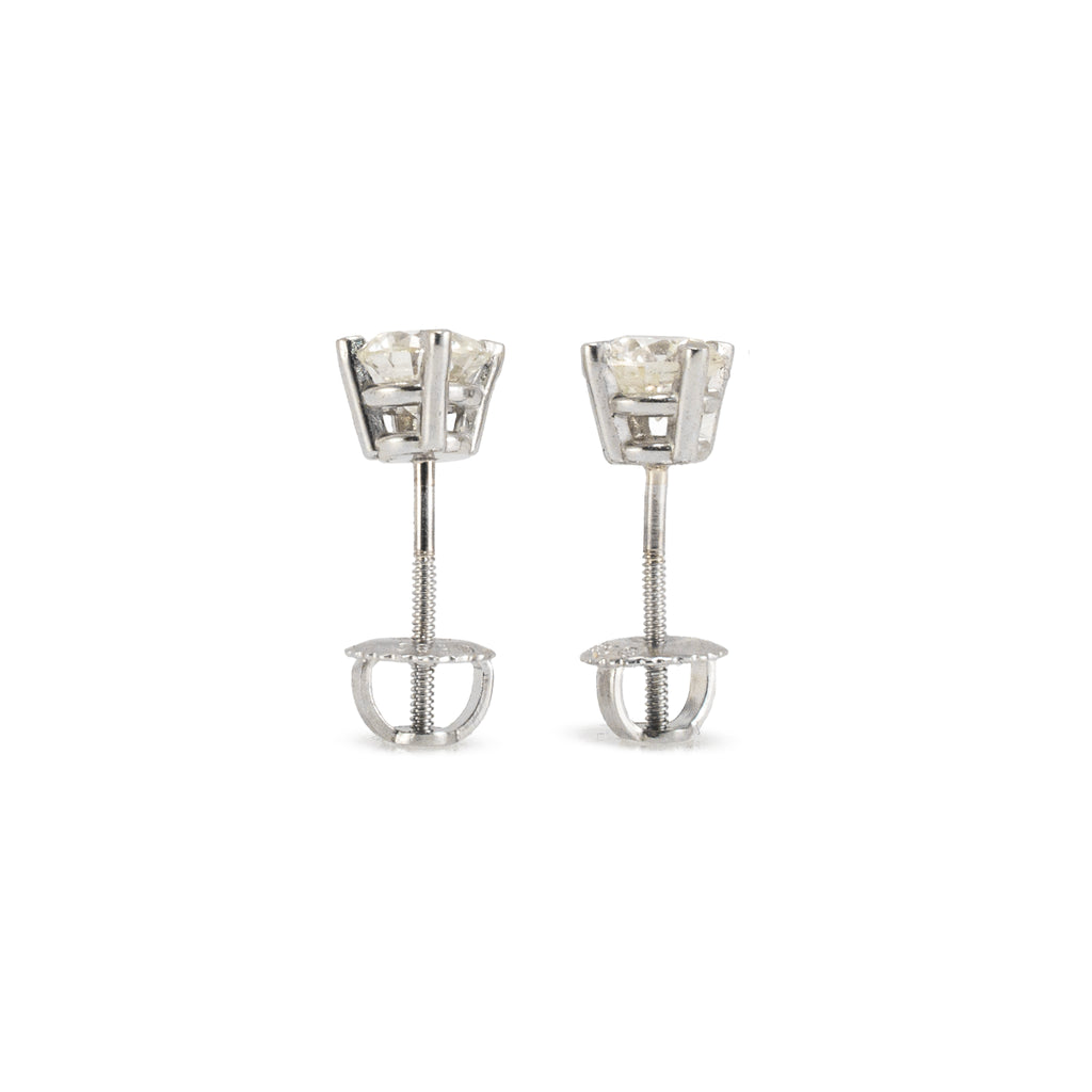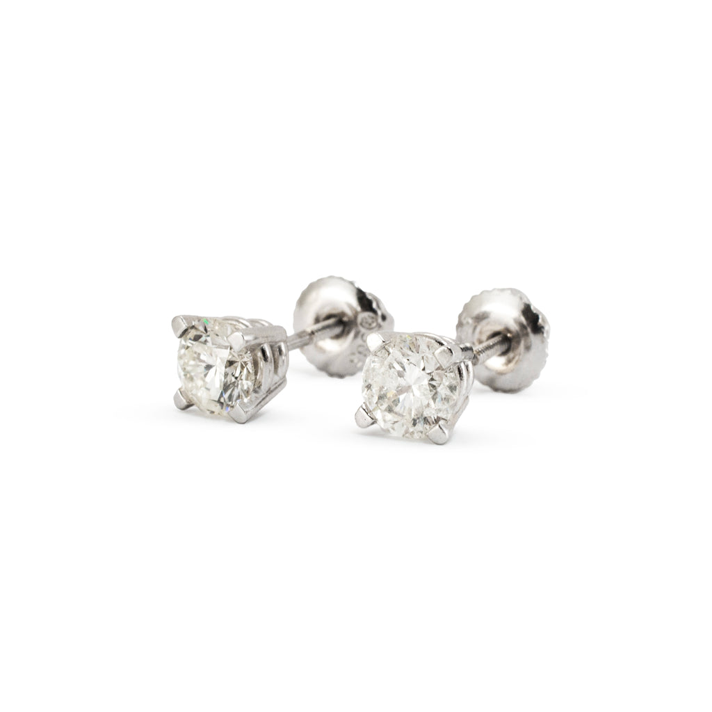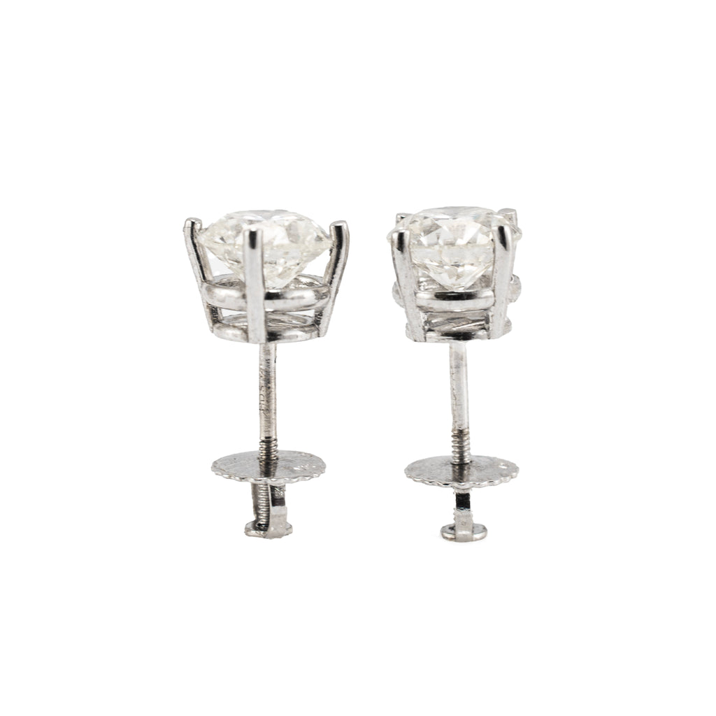 14K White Gold 4 Prong Screw Back 1.08 CT Round Diamond Stud Earrings