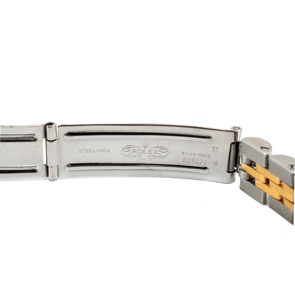 Ladies 18K yellow gold and stainless steel diamond ROLEX Swiss-made wristwatch. The "ROLEX " trademark (or hallmark) can also be found on the item.