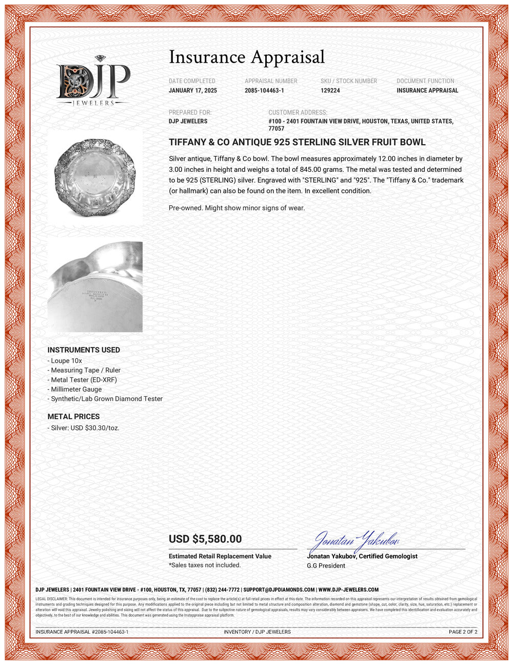 Tiffany & Co Antique 925 Sterling Silver Fruit Bowl