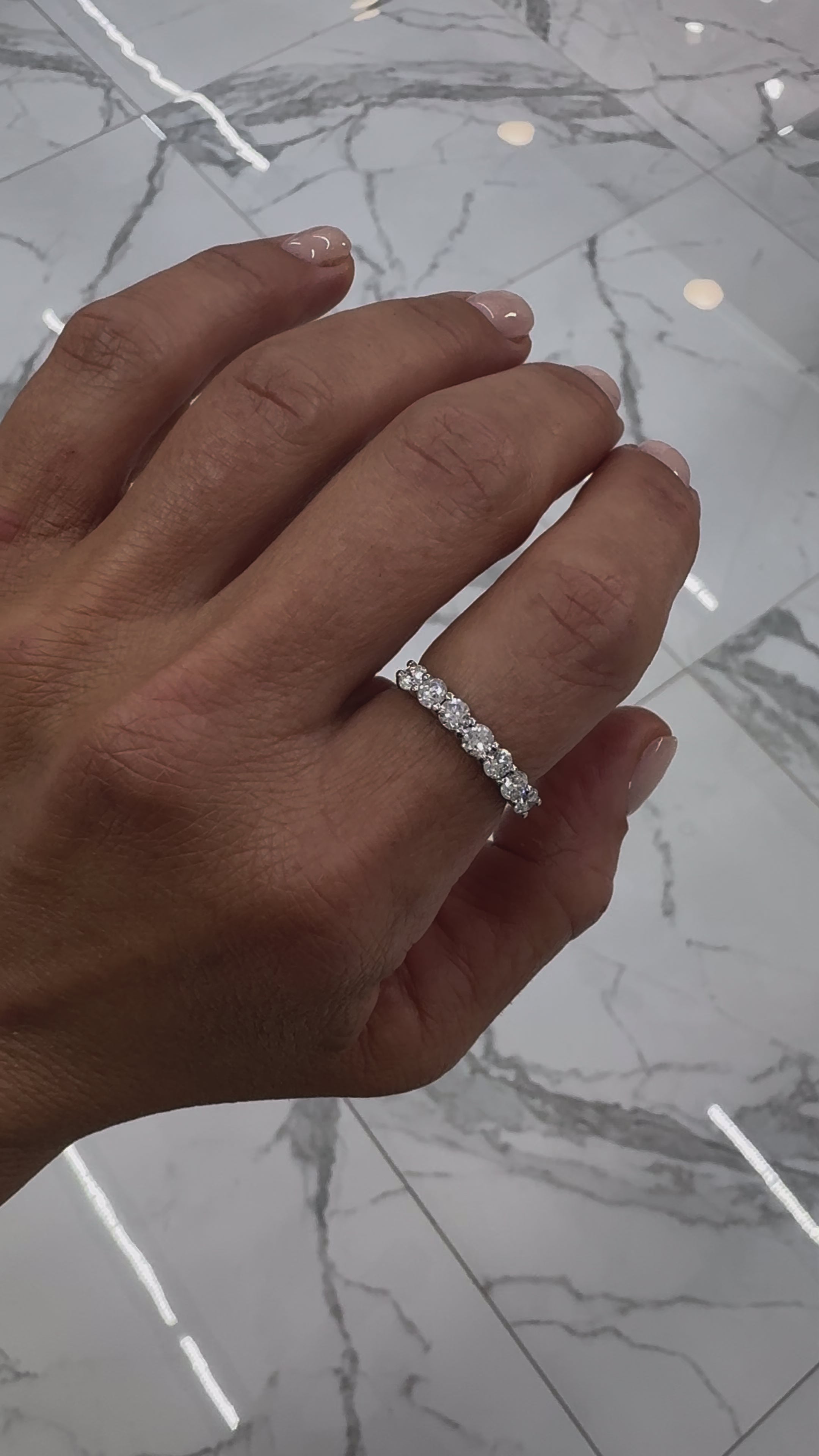 Ladies 14K White Gold 7 Across Half Eternity 1.10CT Diamond Wedding Band