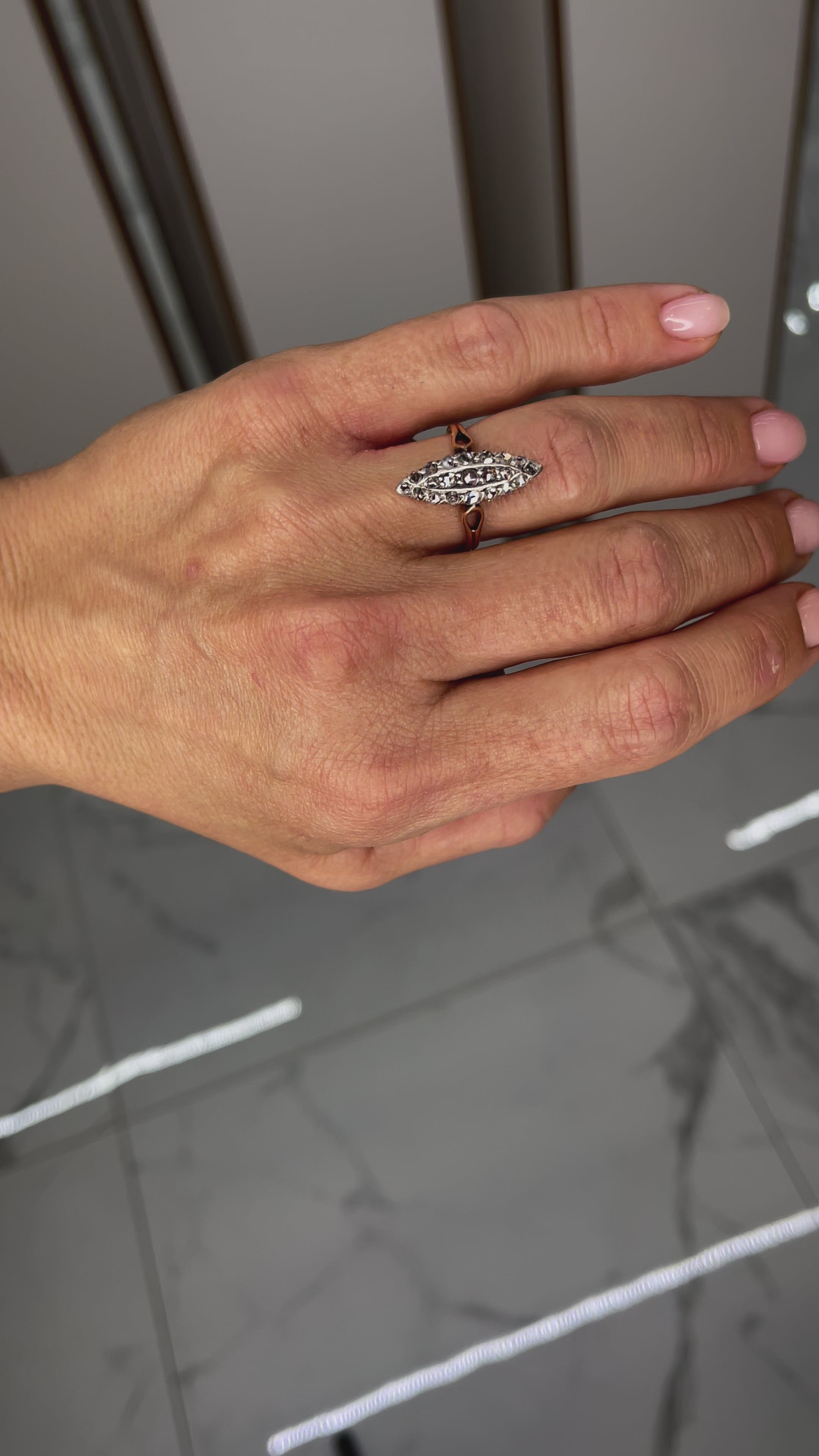Antique Victorian 18K Yellow Gold Marquee Head Rose Cut Diamond Cocktail Navette Ring