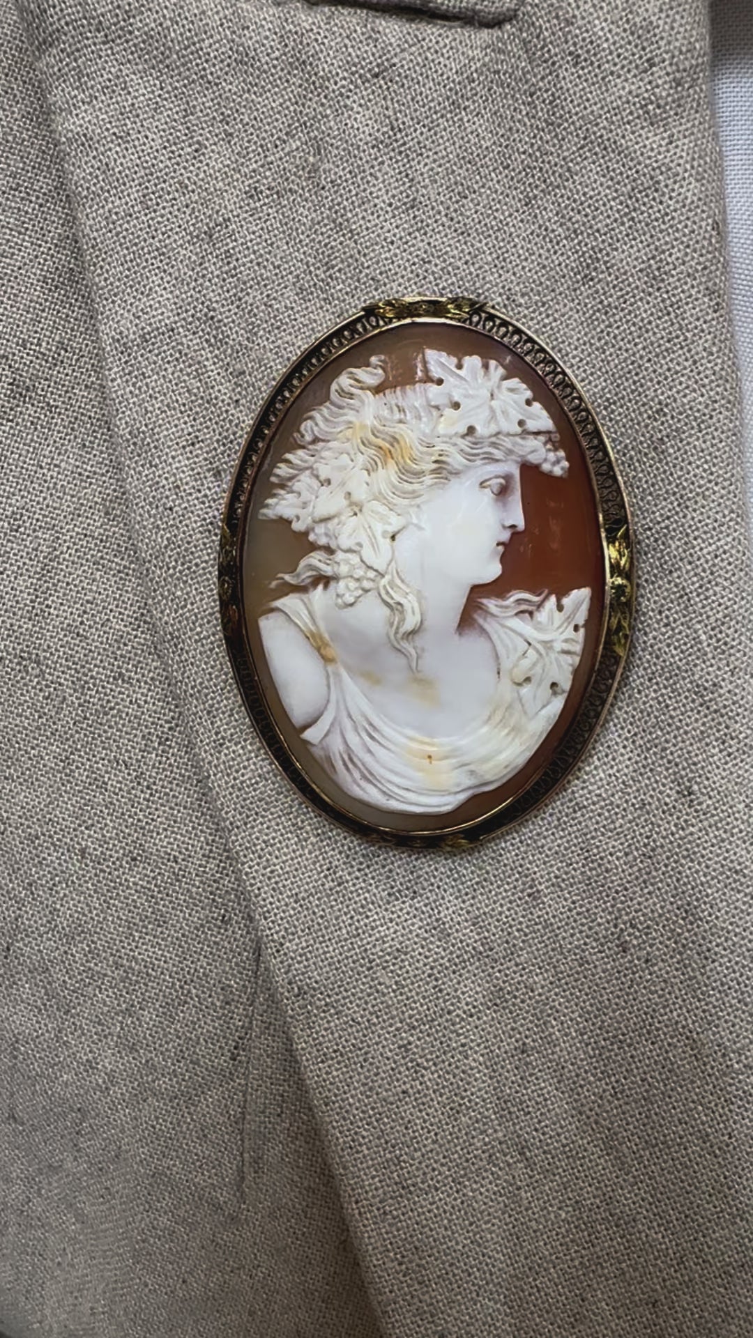 Handmade 14K Yellow Gold cameo sardonyx shell Victorian (1837-1901) brooch.