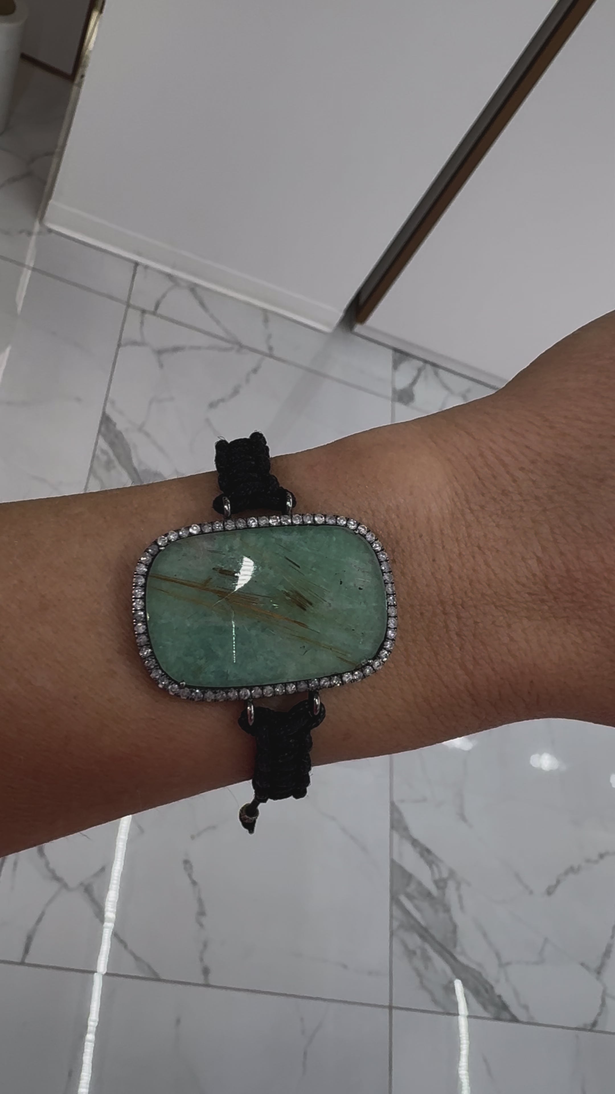 Vintage 925 Sterling Amazonite Halo Diamond Braided Rope Bracelet