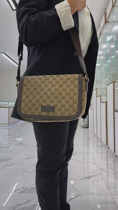 Gucci Monogram GG Canvas 807401990 Brown & Beige Flap Cross Body Messenger Bag