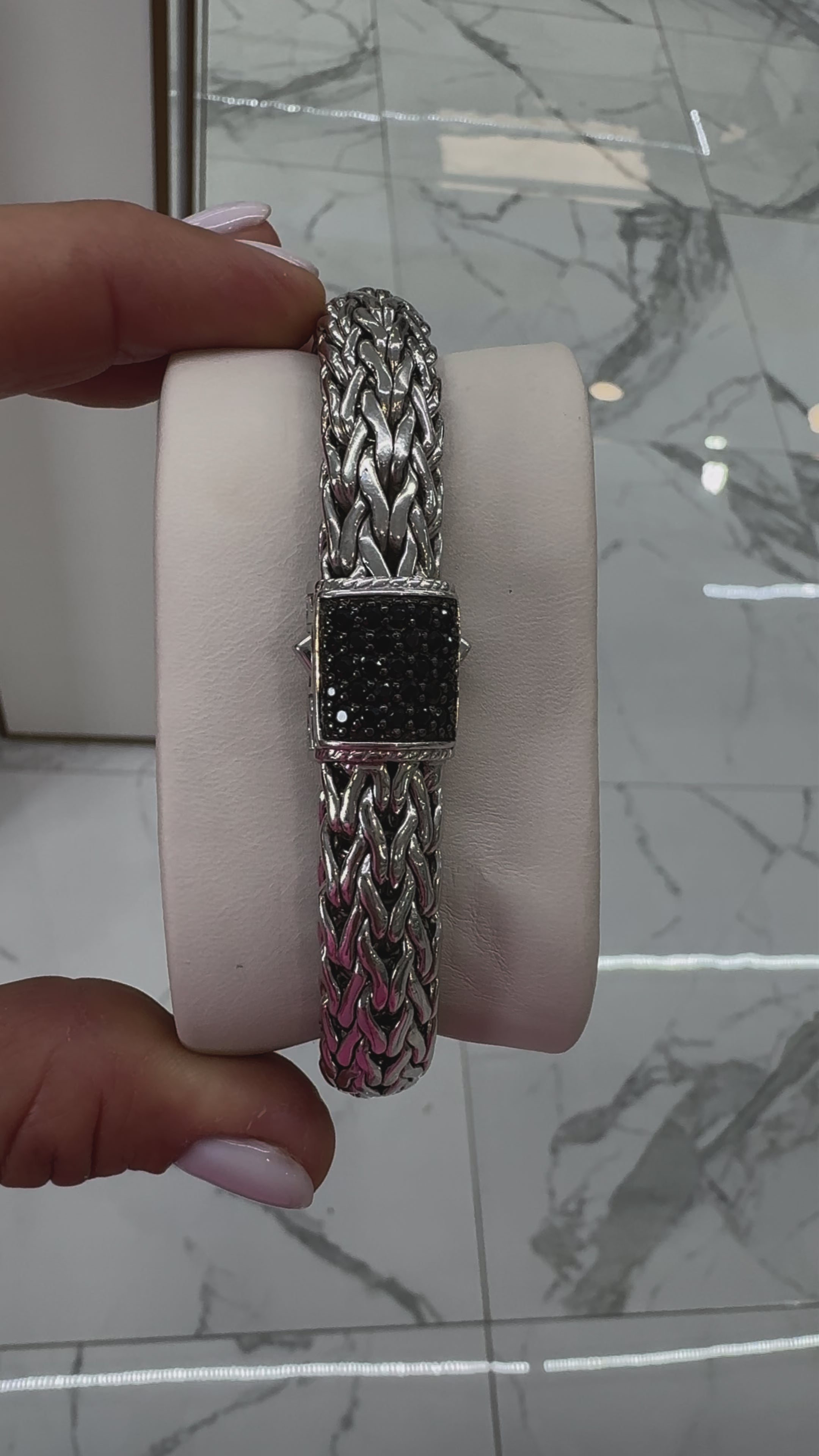 John Hardy 925 Sterling Silver Pave Black Sapphire Icon Link Bracelet 10.5mm