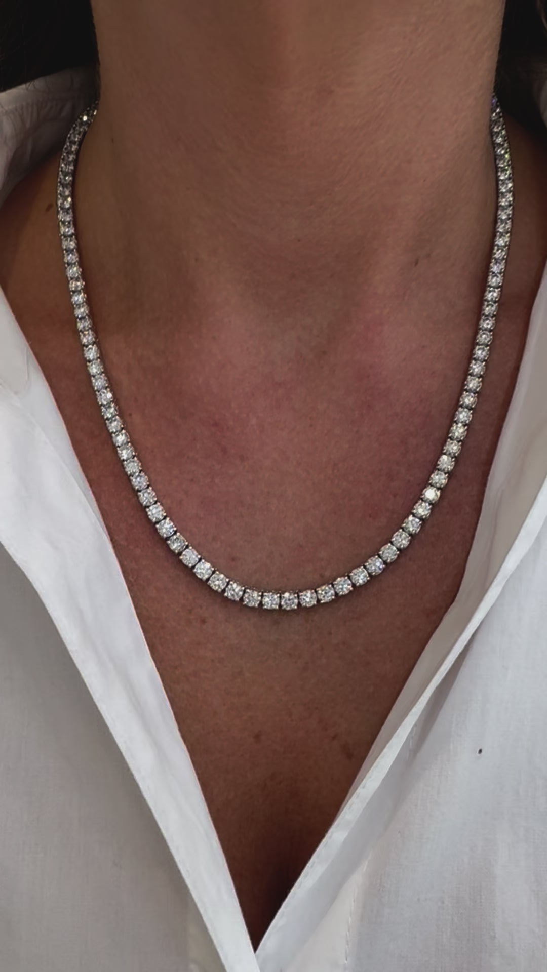 14K White Gold 4-Prong 20.18ct. Lab Grown Diamond Tennis Chain Necklace