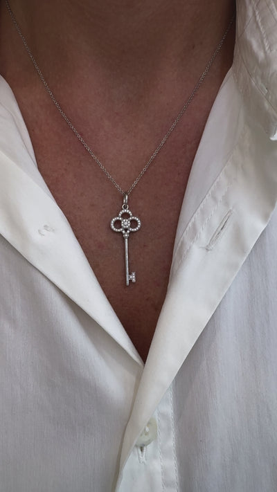 Tiffany & Co. Keys 18K White Gold Pave Diamond Mini Crown Key Pendant Necklace