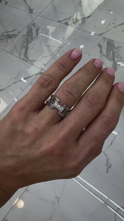 Tiffany & Co. Atlas 18K White Gold Three Diamond Open Band Ring