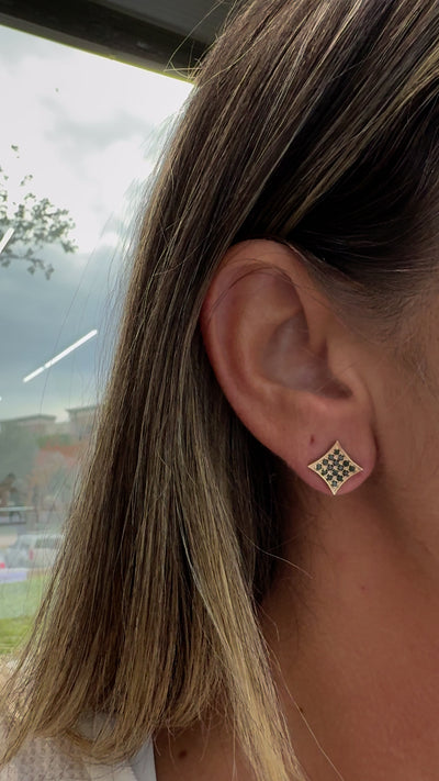 14K Yellow Gold Square Pave Black Diamond Screw Back Stud Earrings