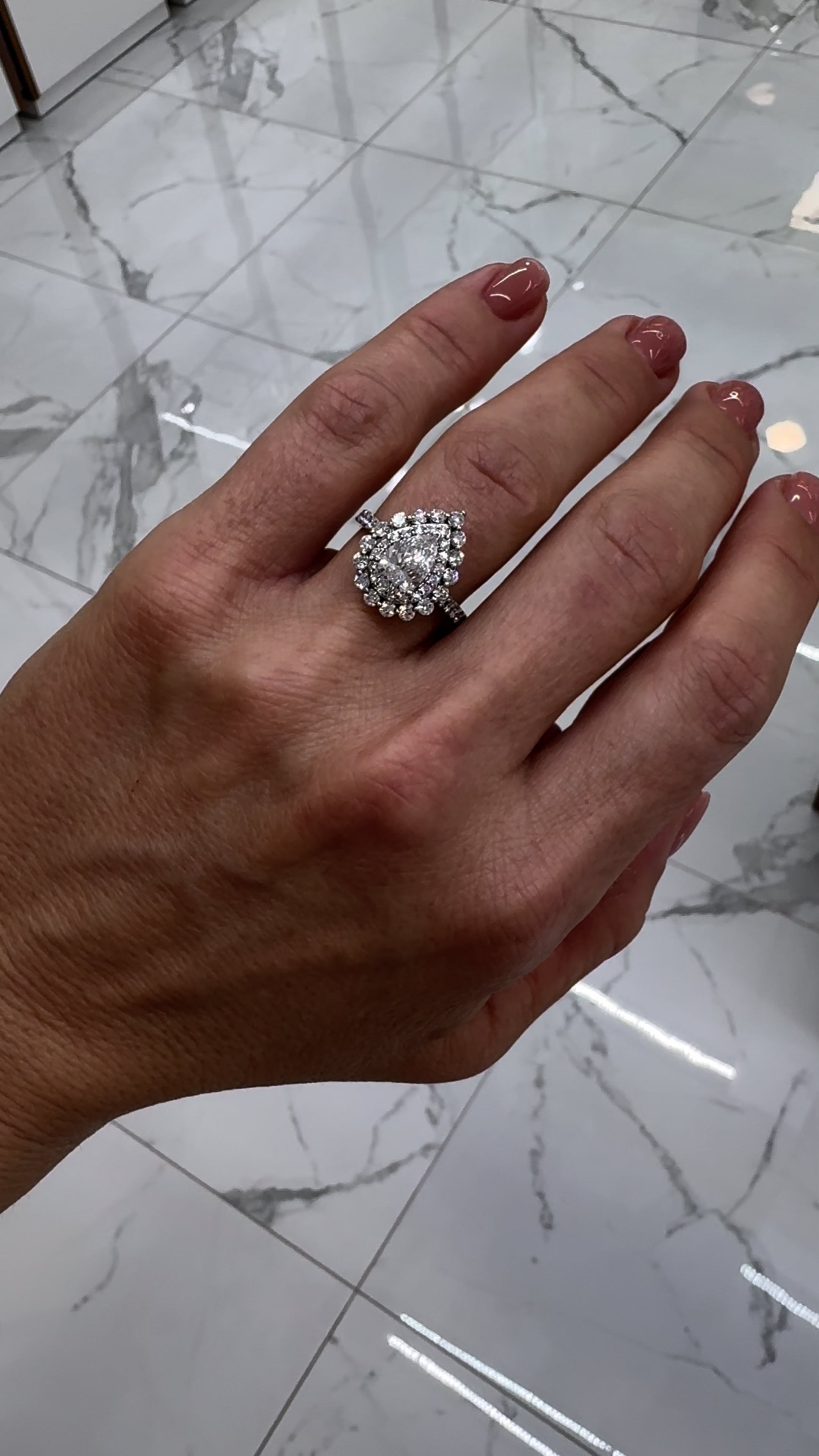 Ladies 14K White Gold Pear Shape Double Halo Lab Grown Diamond Engagement Ring