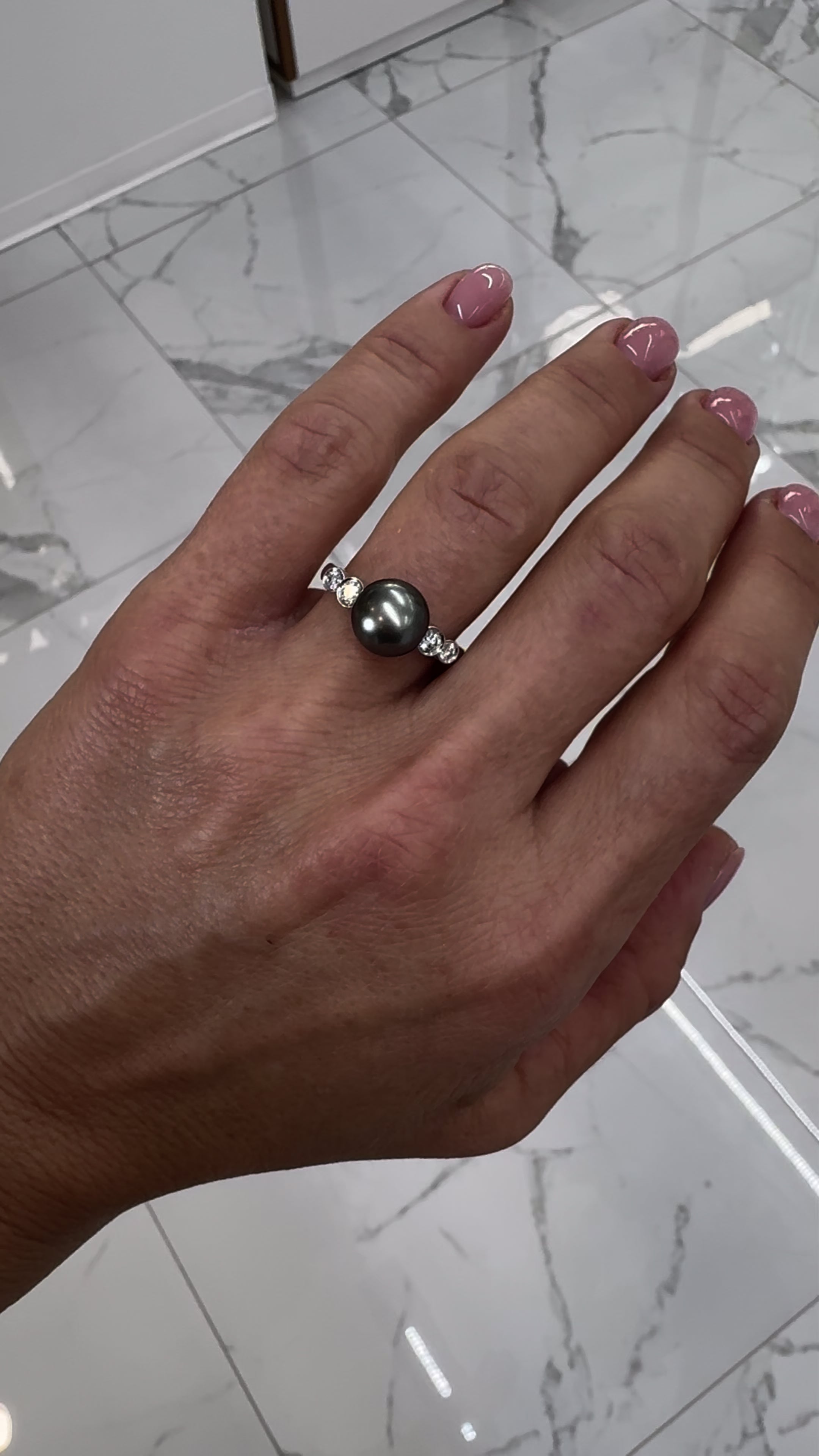 Mikimoto 18K White Gold Tahitian Pearl Accented Diamond Cocktail Ring