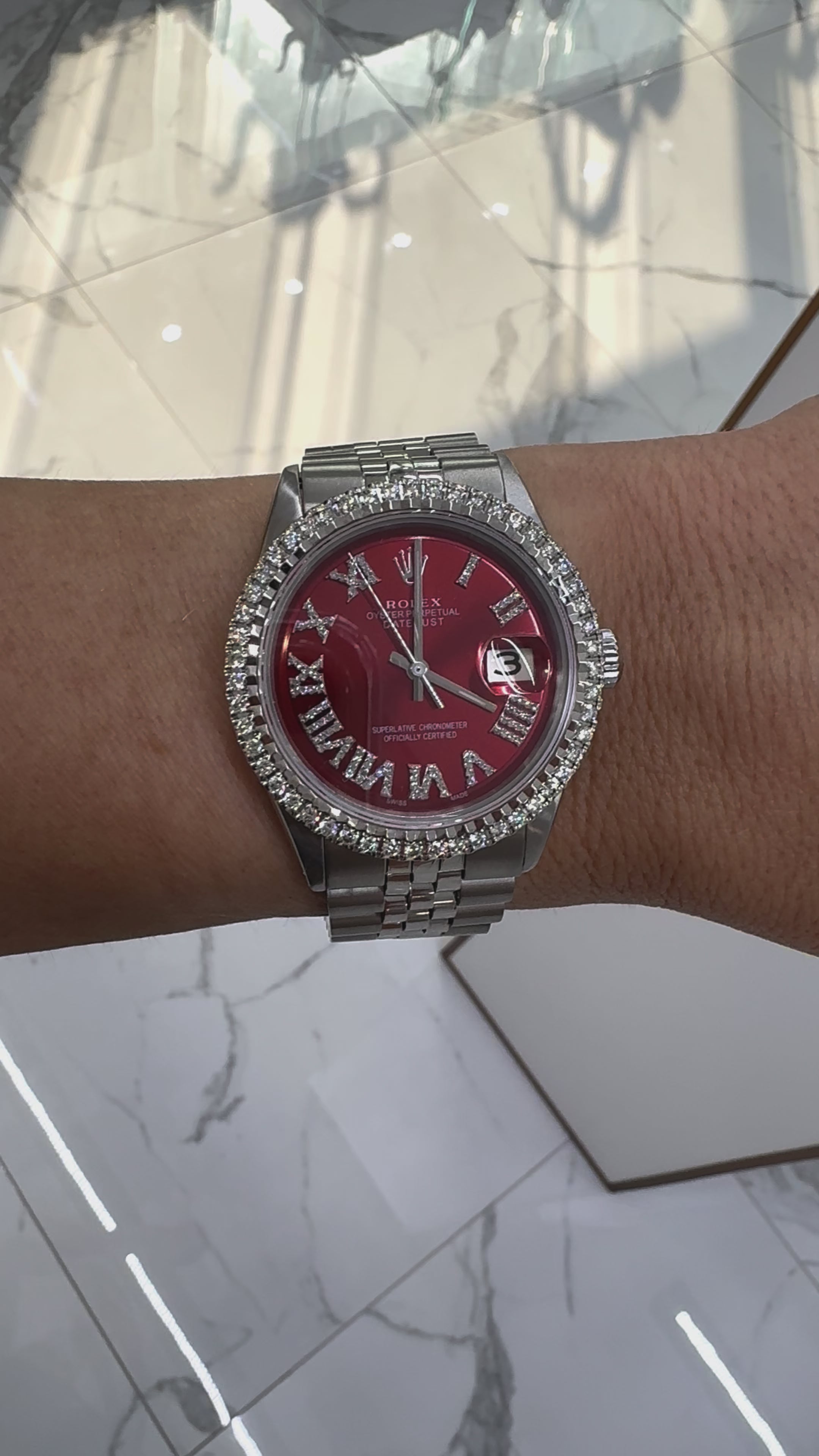 - Finish: Custom Roman Diamond Dial