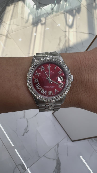 Rolex Datejust 36MM 1601 Red Roman Dial Diamond Jubilee Stainless Steel Watch