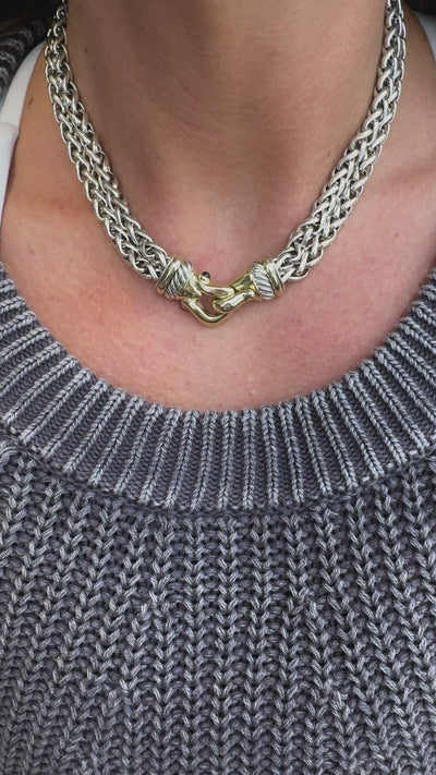 David Yurman 925 Sterling Silver Yellow Gold Buckle Double Wheat Chain Necklace
