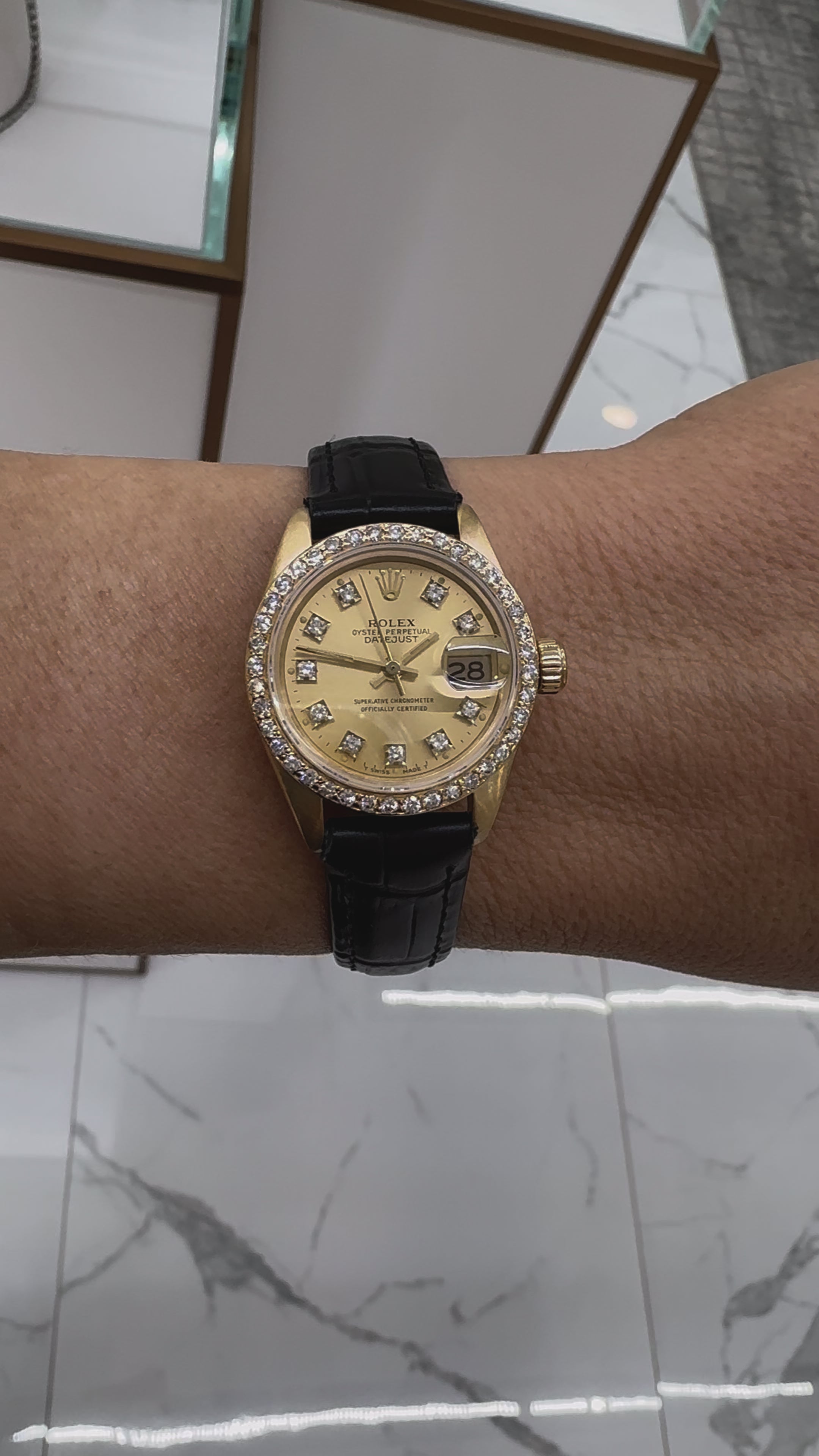 1982 Rolex Lady Datejust 26MM 6917 Champagne Diamond Bezel 18K Yellow Gold Watch