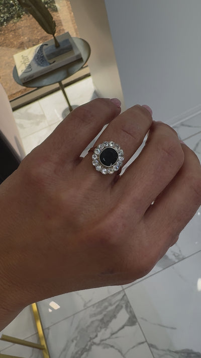 Antique 18K Yellow Gold Australian Sapphire Old European Diamond Cocktail Ring