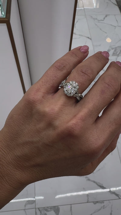 18K White Gold GIA 1.01ct Cushion Cut Diamond Crossover Shank Engagement Ring
