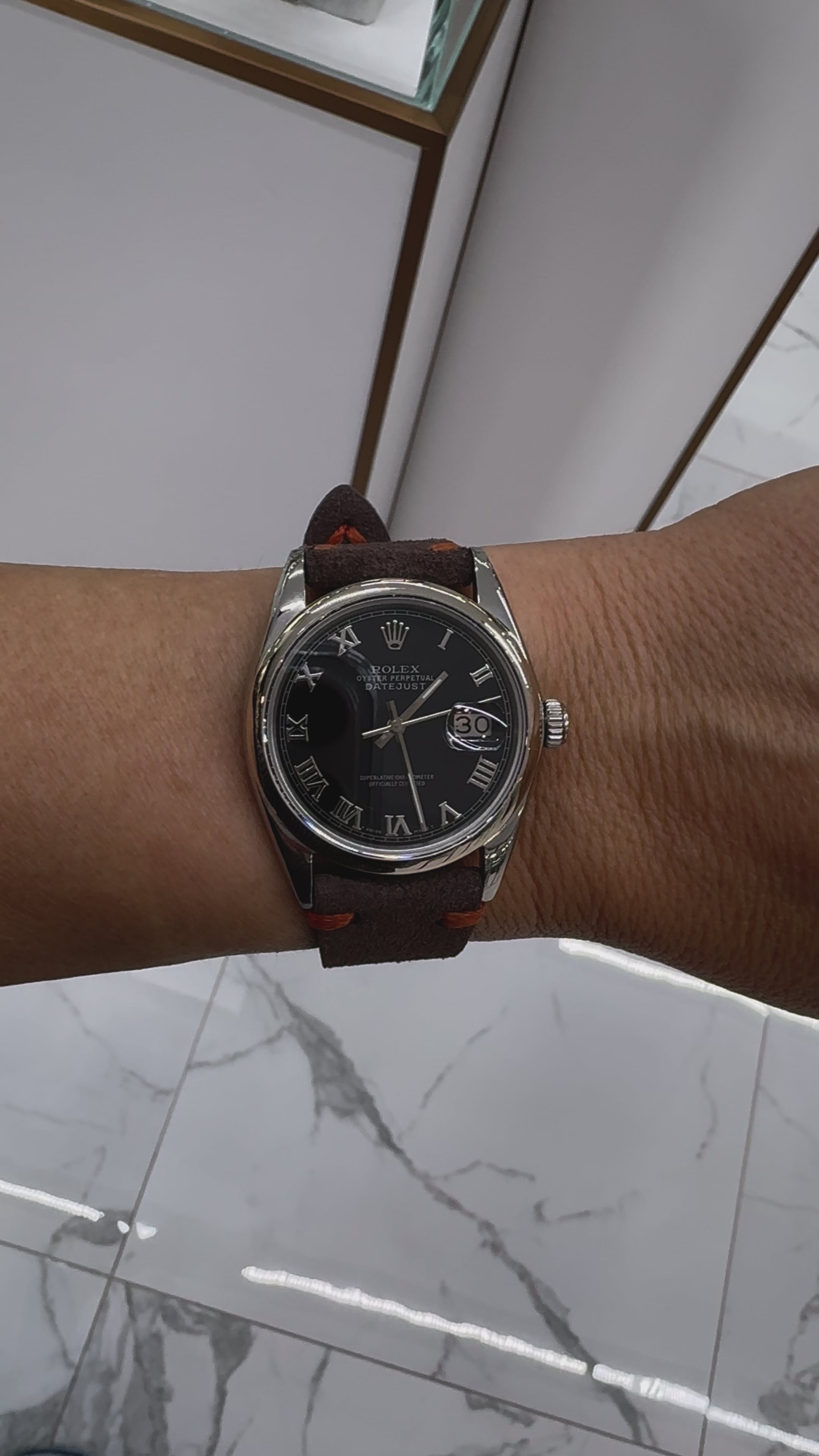 1978 Rolex Datejust 36MM 16030 Black Roman Leather Strap Stainless Steel Watch