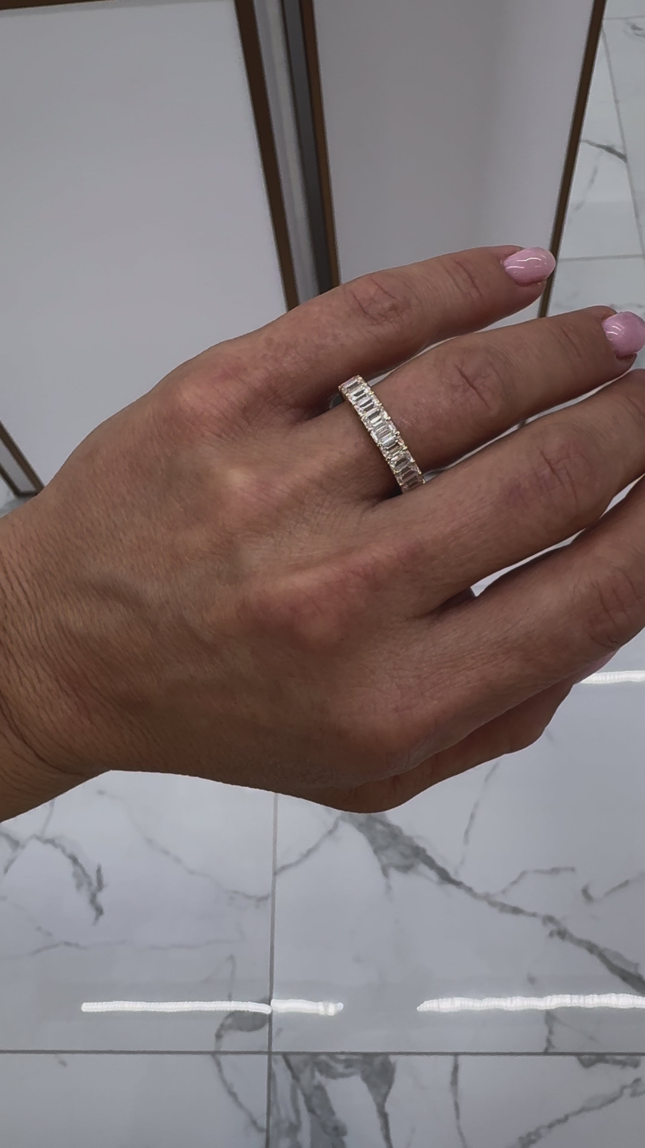 Ladies 18K Yellow Gold Full Eternity Emerald Cut Diamond Wedding Band