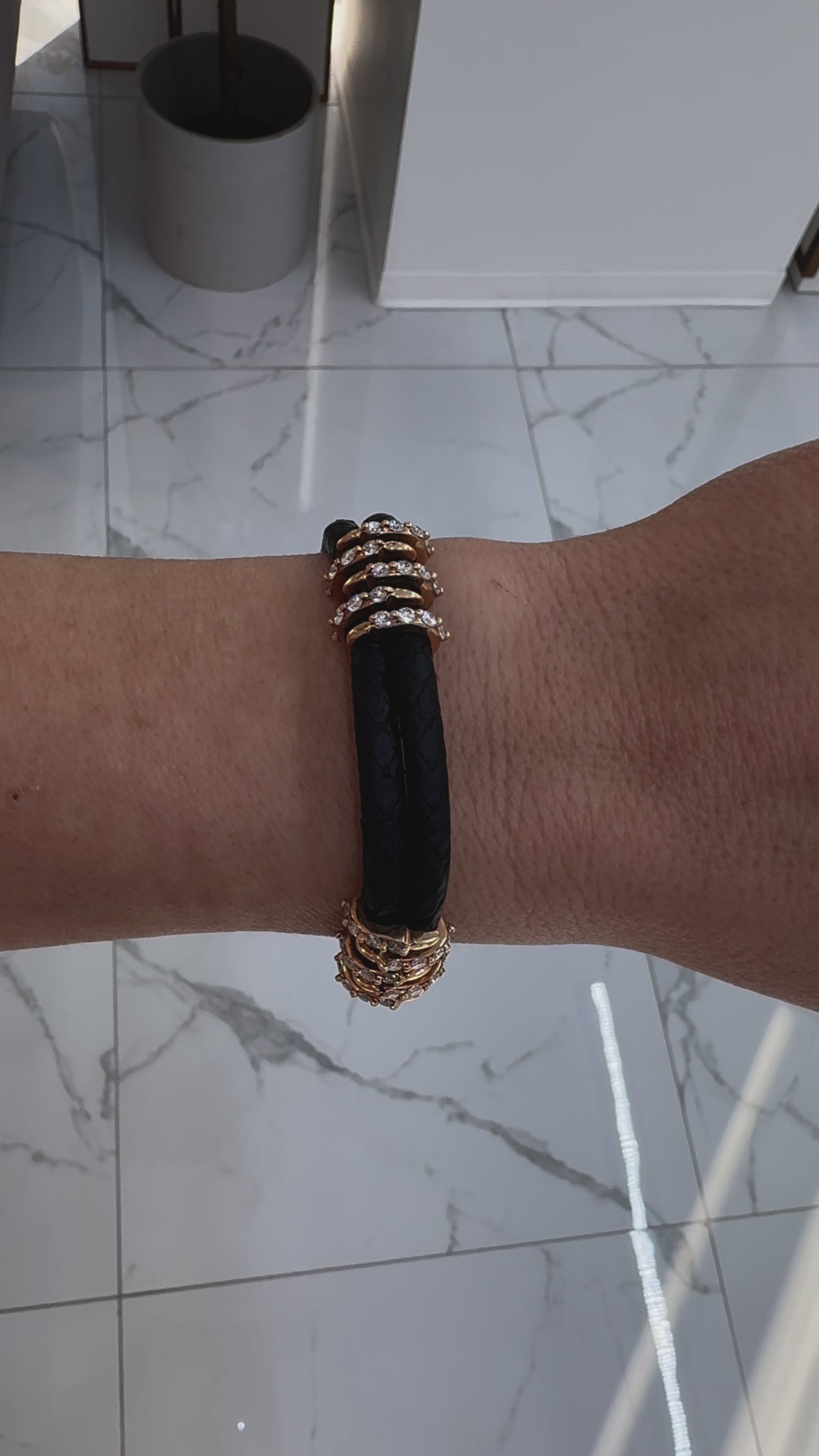 18K Yellow Gold Claw Pave Diamond Leather Bangle Bracelet