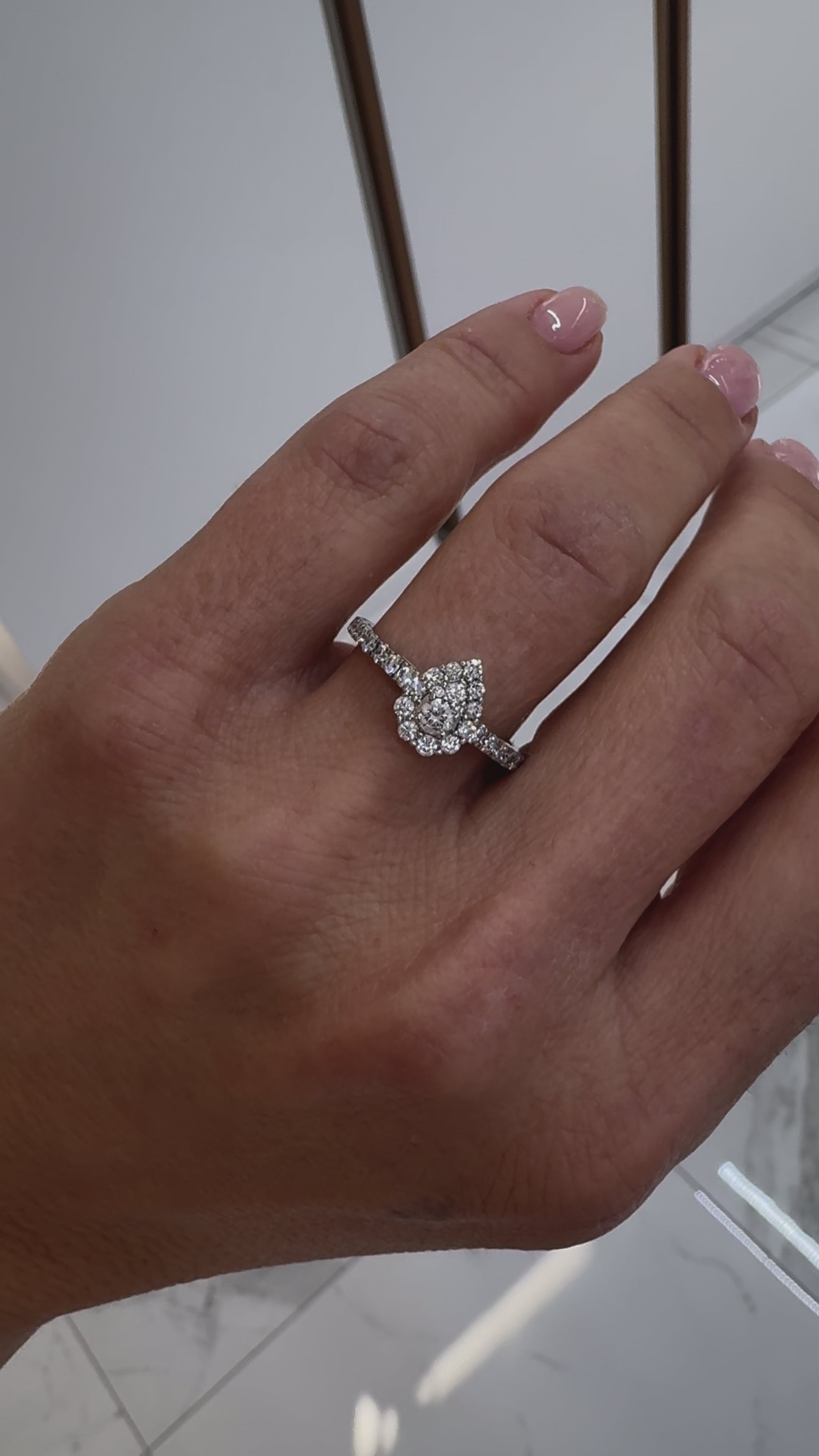 Ladies 10K White Gold Pear Shape Cluster Lab Grown Diamond Engagement Ring