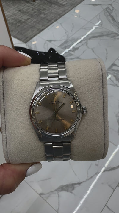 Vintage 1968 Rolex Oyster Perpetual 34MM 1002 Brown Stick Stainless Steel Watch