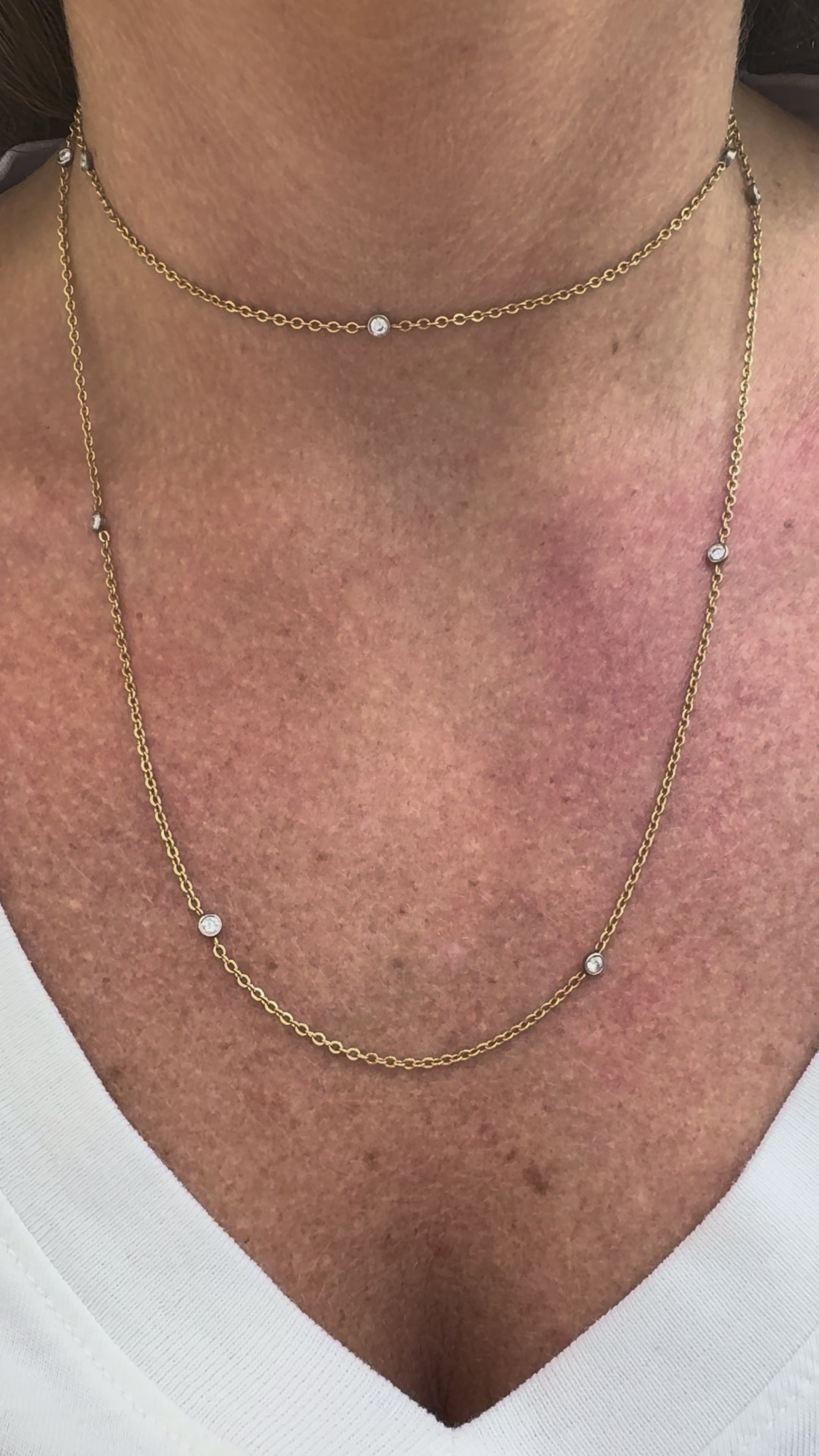 Vintage Palladium 14K Yellow Gold Diamond by the Yard Opera Chain Necklace