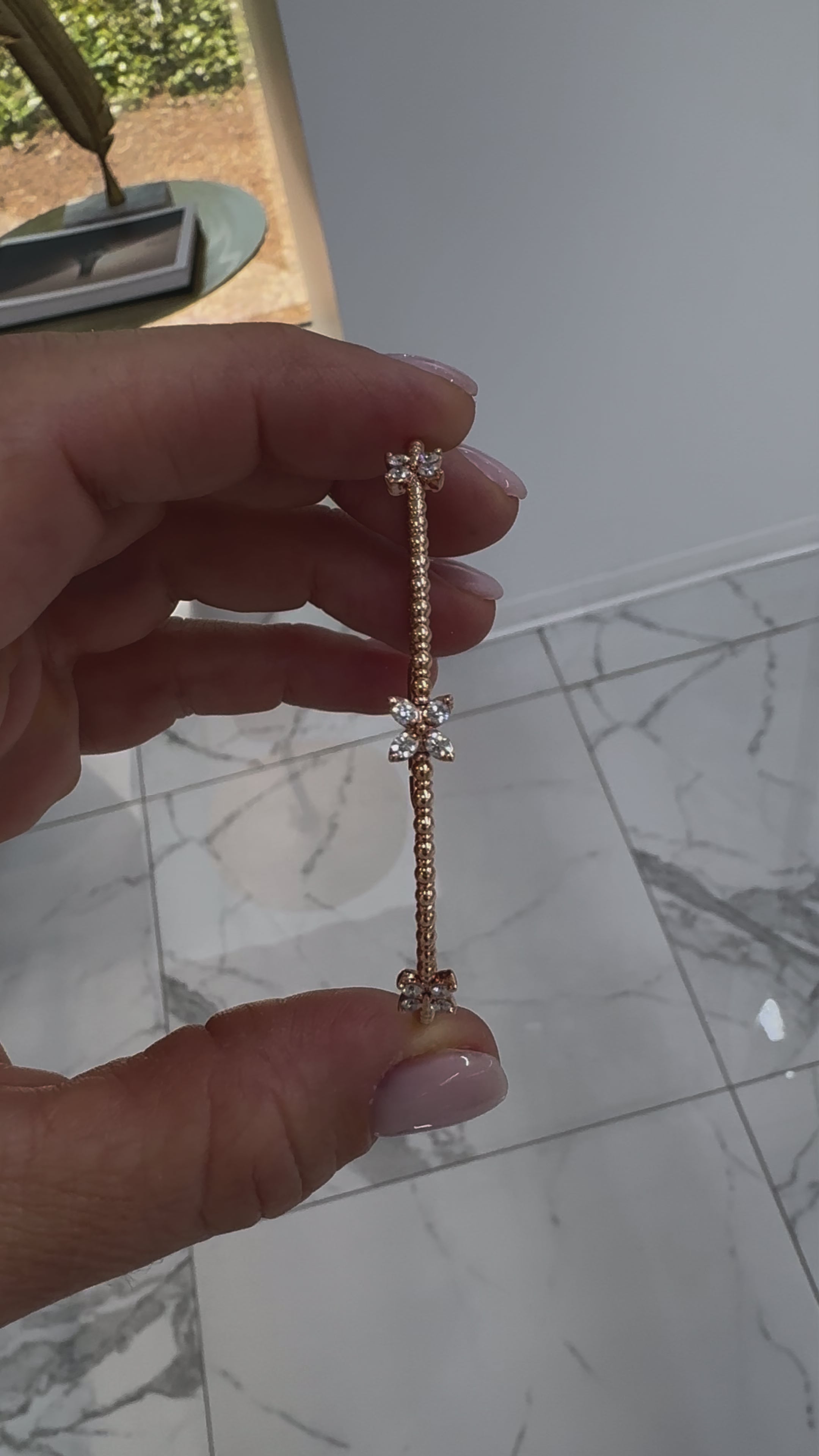 Ladies 14K Rose Gold Three Butterfly Diamond Flexible Bangle Bracelet