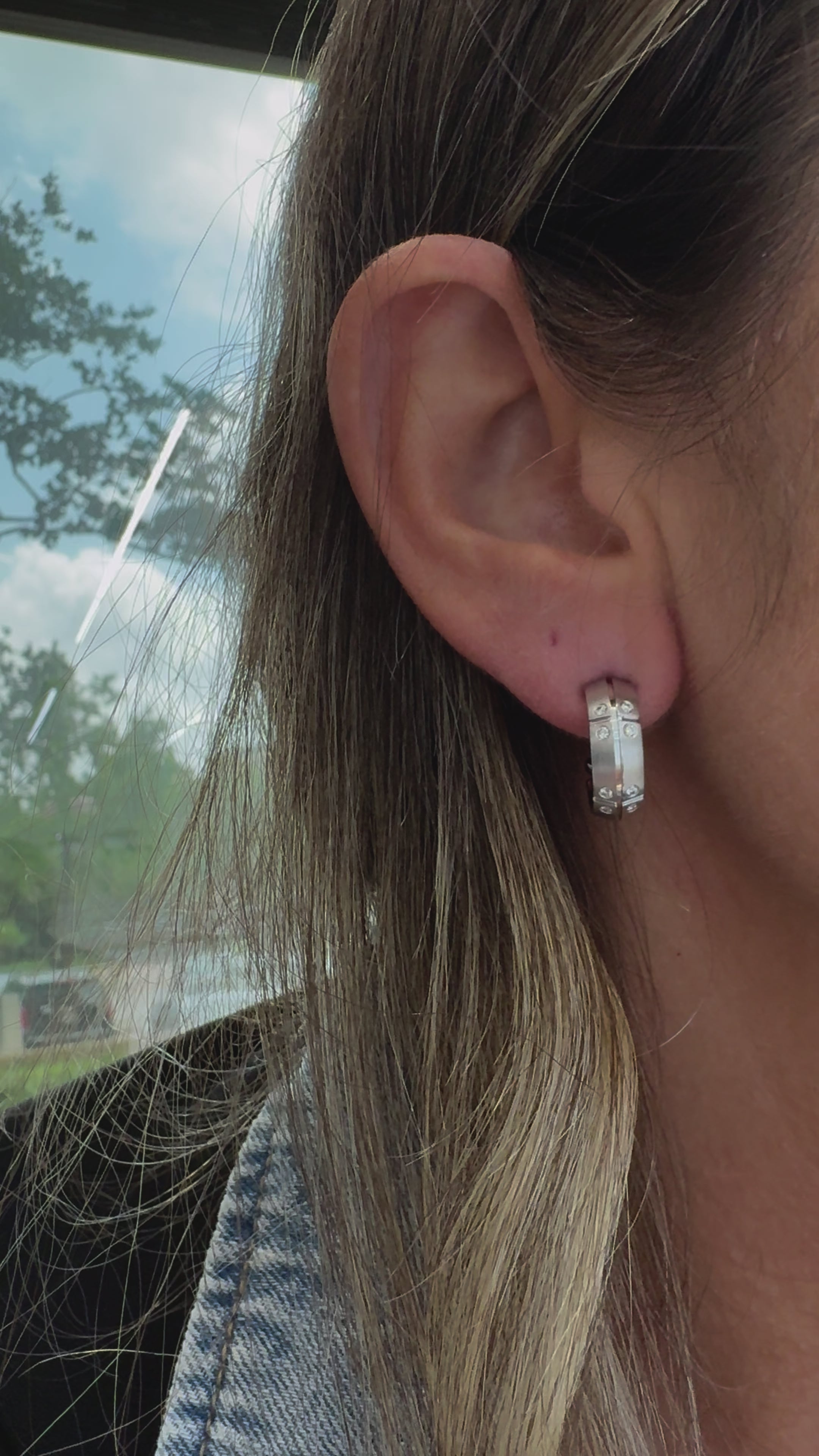 One pair of ladies 18K white gold diamond hoop huggy-style earrings. The metal was tested and determined to be 18K white gold. Engraved with "2000" and "750". The "Tiffany & Co." trademark (or hallmark) can also be found on the item. In excellent condition.