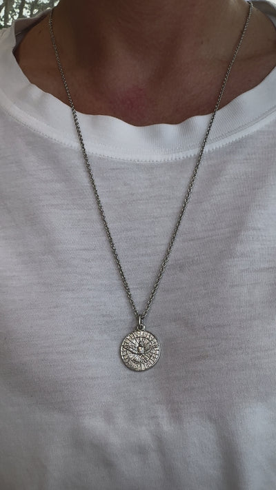 Mene Pure Platinum Holy Spirit Dove Medallion Pendant Necklace