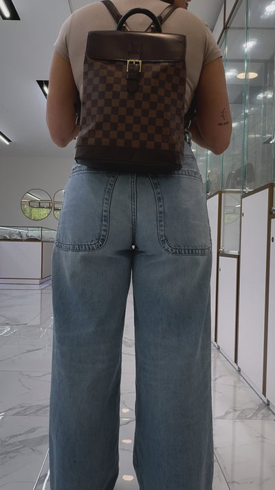 2003 Louis Vuitton N51132 Damier Ebene Soho Canvas Leather Backpack