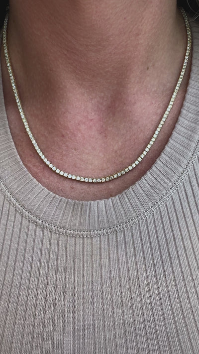 14K Yellow Gold 6.30ct Diamond Tennis Chain Necklace