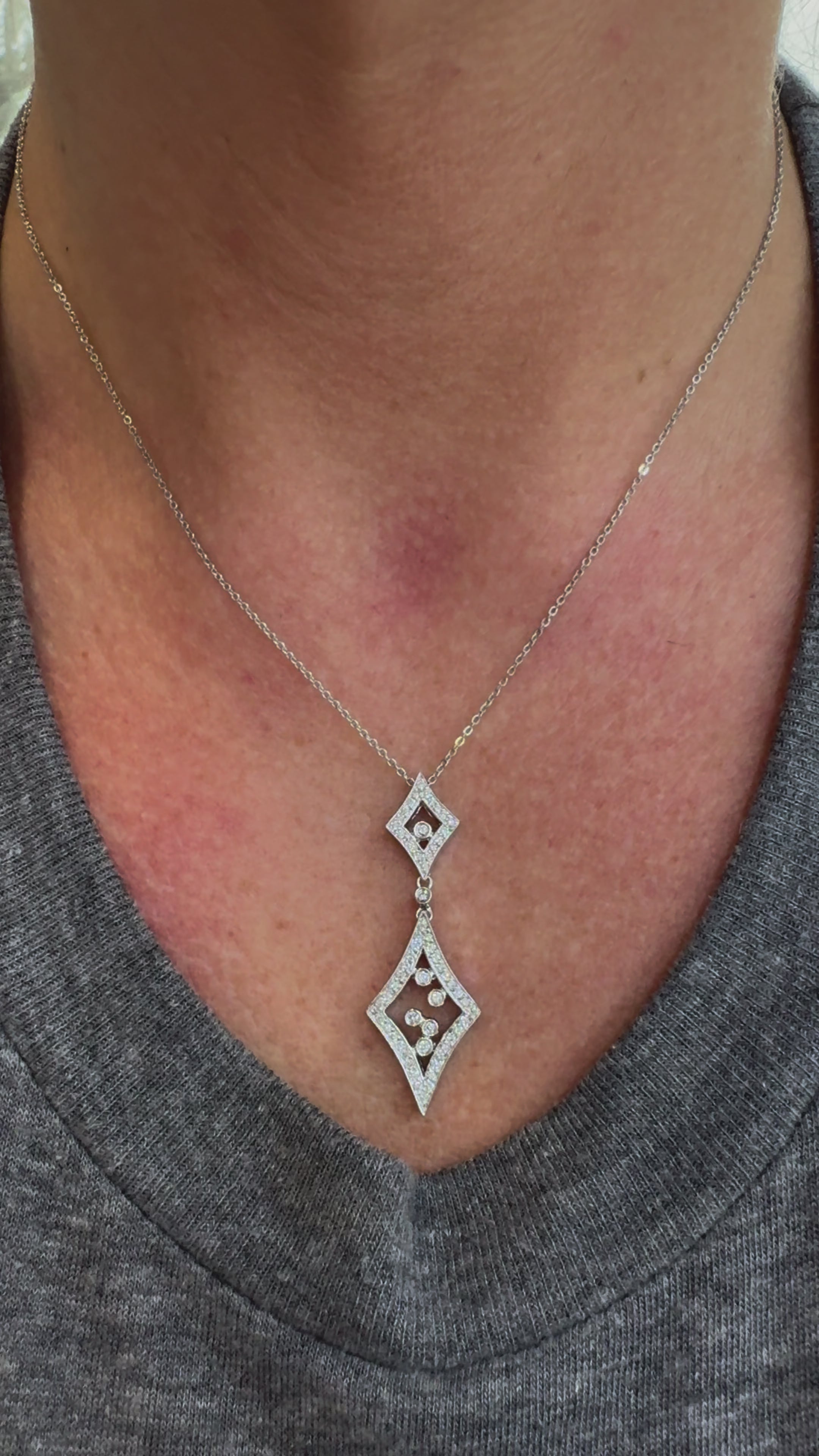 Ladies 14K White Gold Double Rhombus Diamond Drop Pendant Necklace