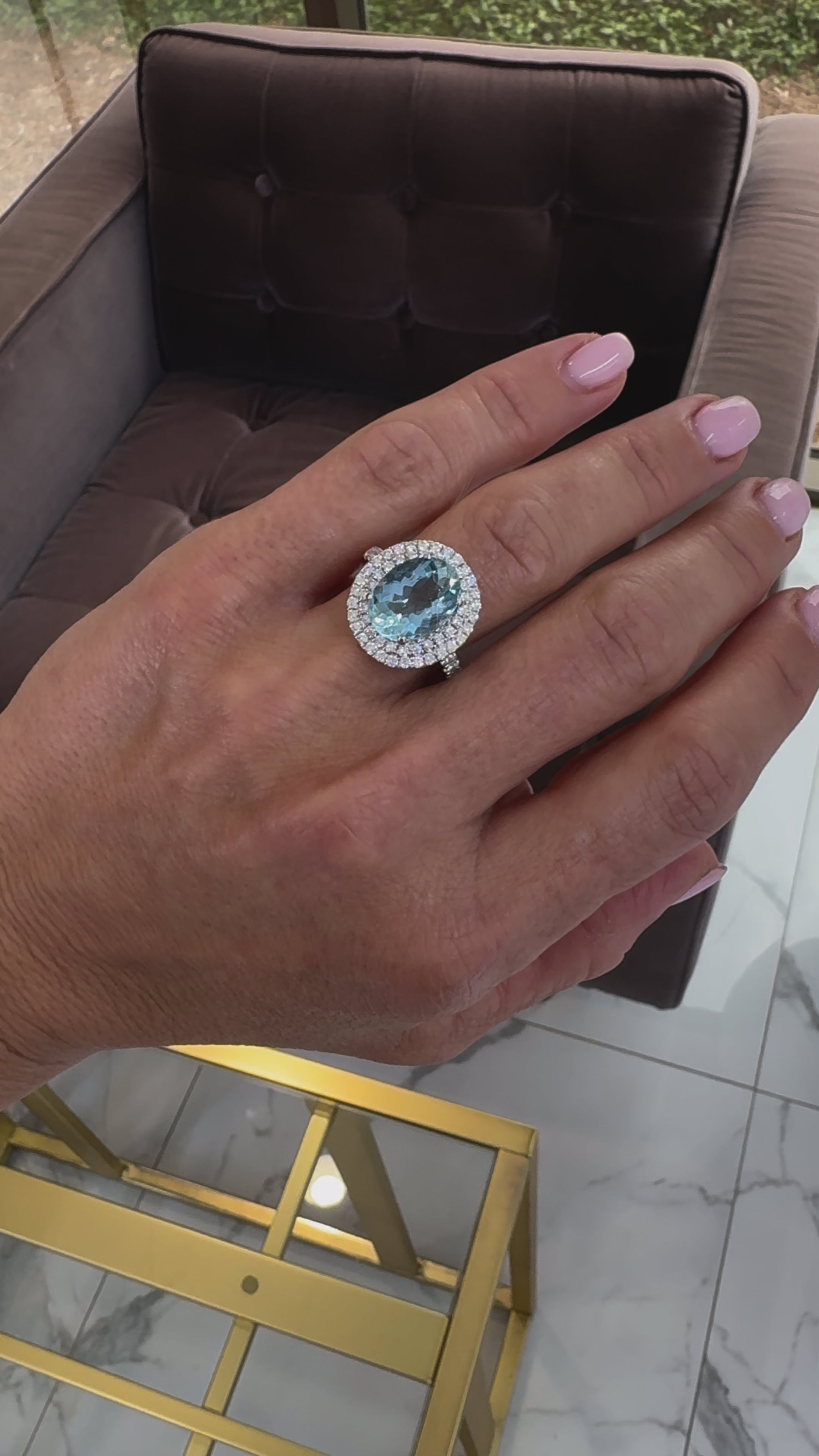 Ladies 14K White Gold 4.52ct Aquamarine Halo Diamond Cocktail Ring
