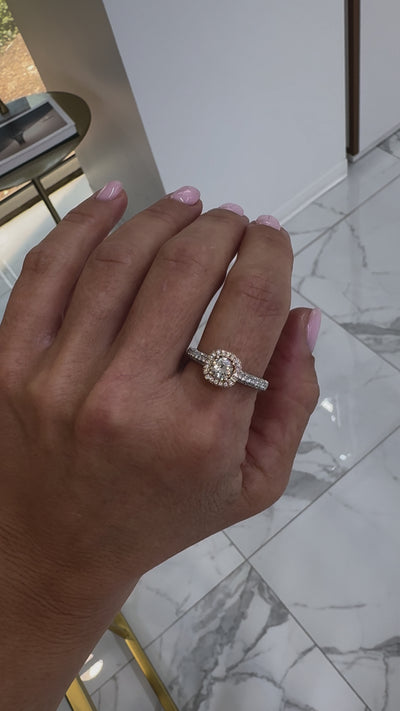 Ladies 14K White and Rose Gold 0.65ct Round Halo Diamond Engagement Ring