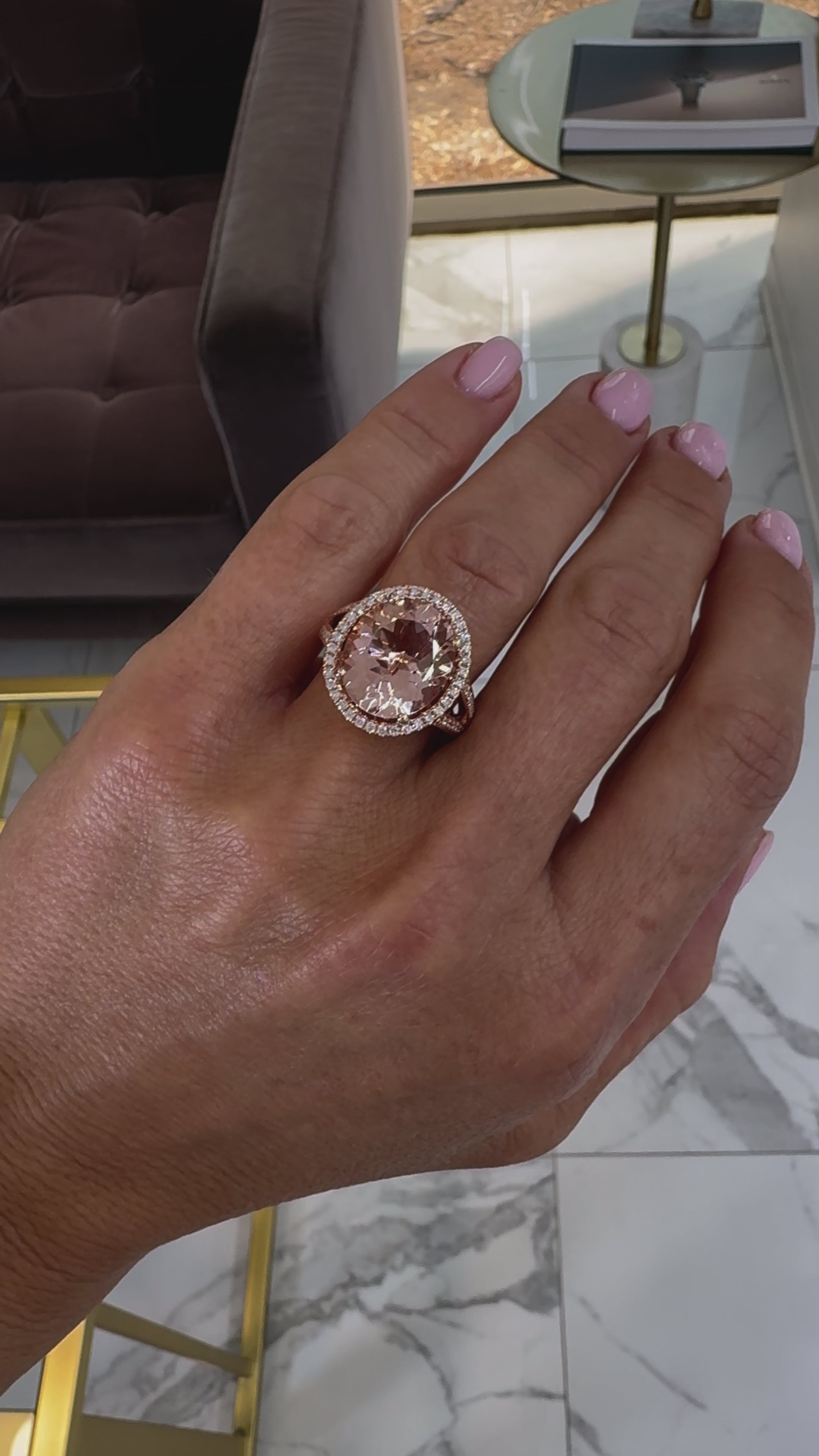 14K Rose Gold 7.38ct Morganite Halo Accented Diamond Cocktail Ring