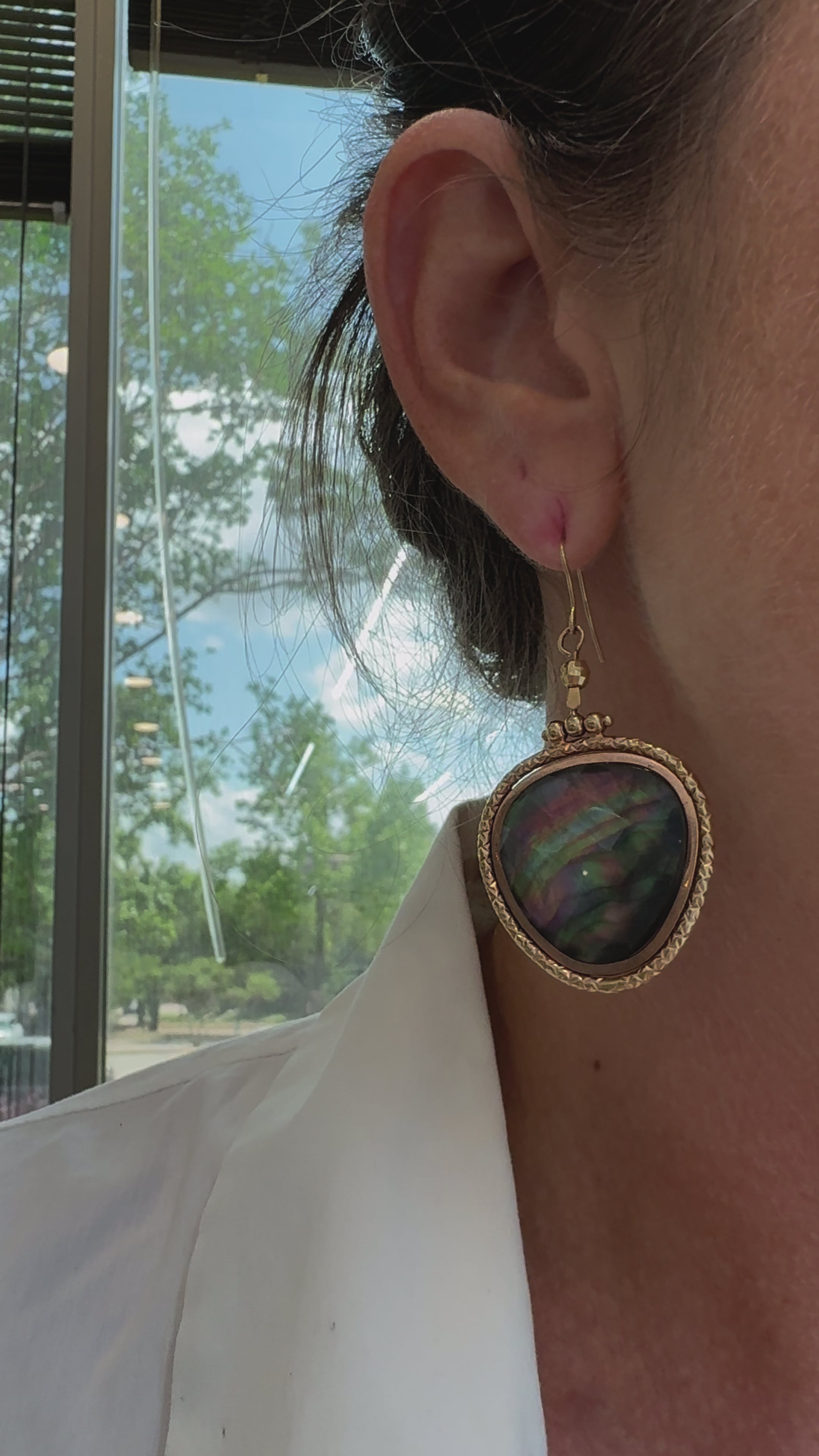 Ladies 14K Yellow Gold Labradorite Textured Drop Dangle Earrings