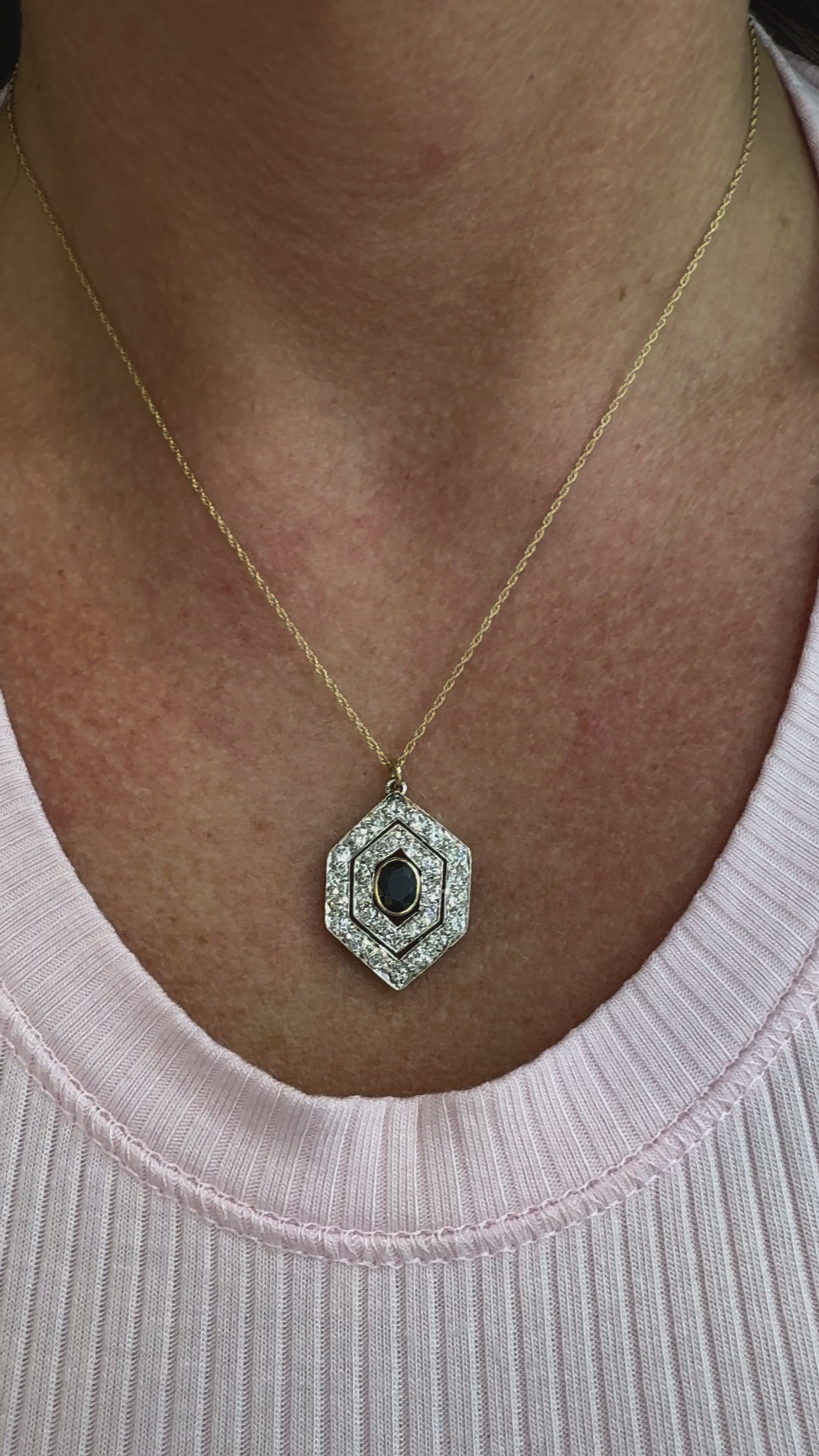 Antique 14K Yellow Gold Sapphire Diamond Drop Pendant Necklace