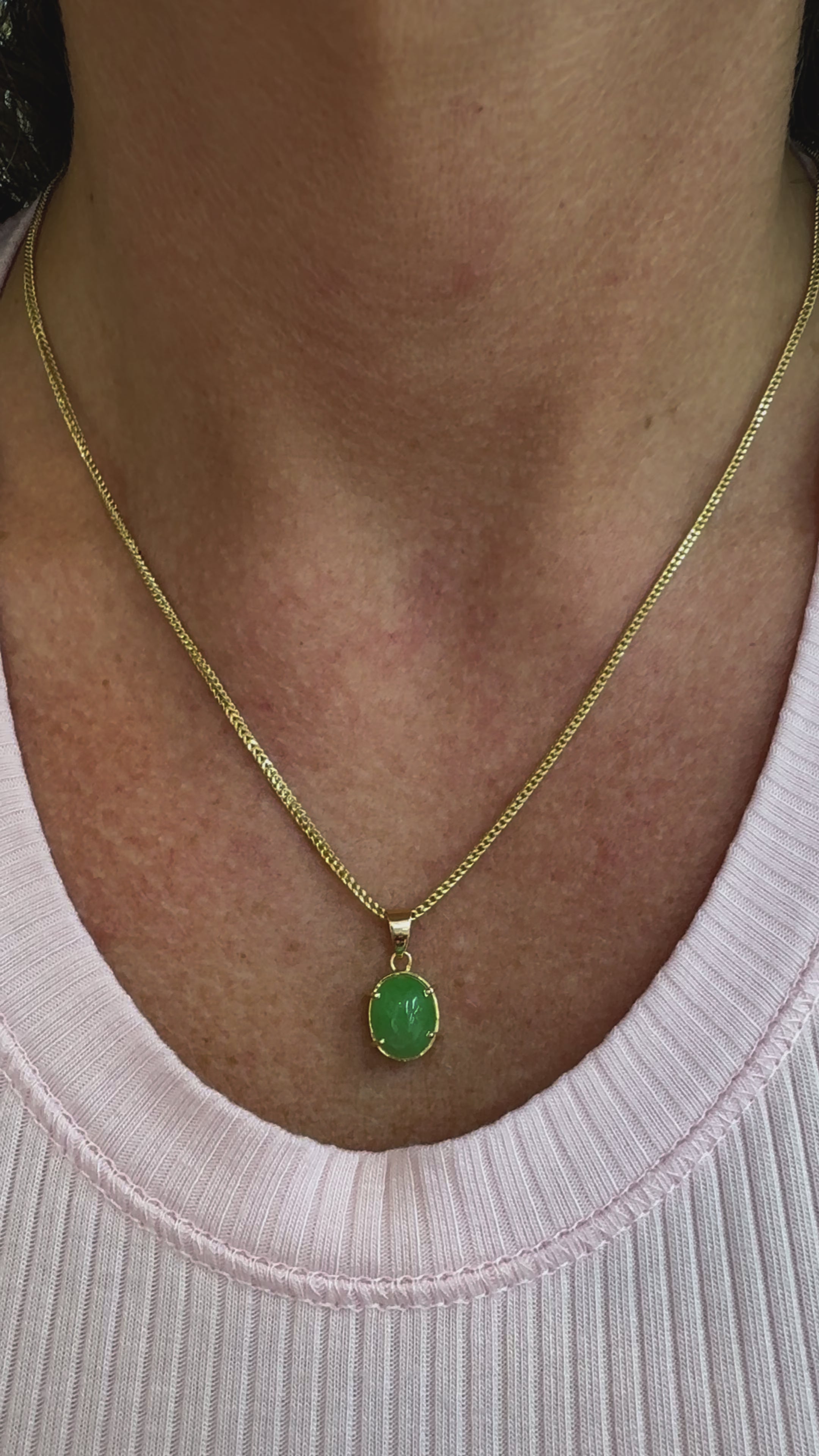 Ladies 18K Yellow Gold Cabochon Oval Emerald Solitaire Pendant Necklace
