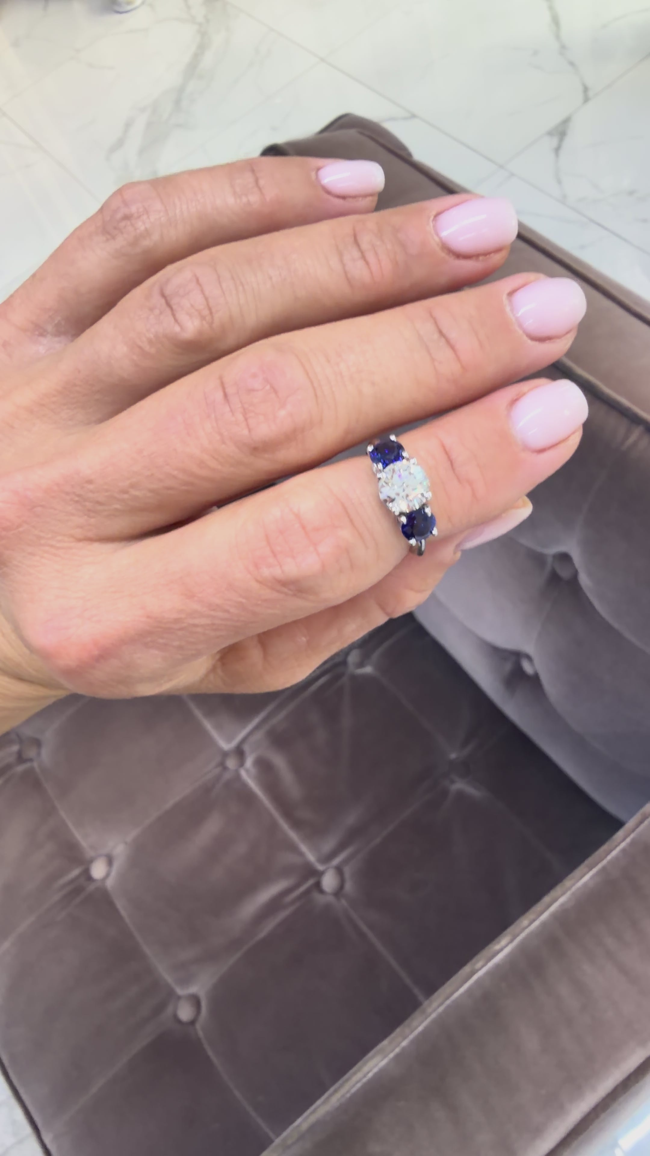 Tiffany & Co. Three Stone Platinum 1.31ct Gia Diamond Sapphire Engagement Ring