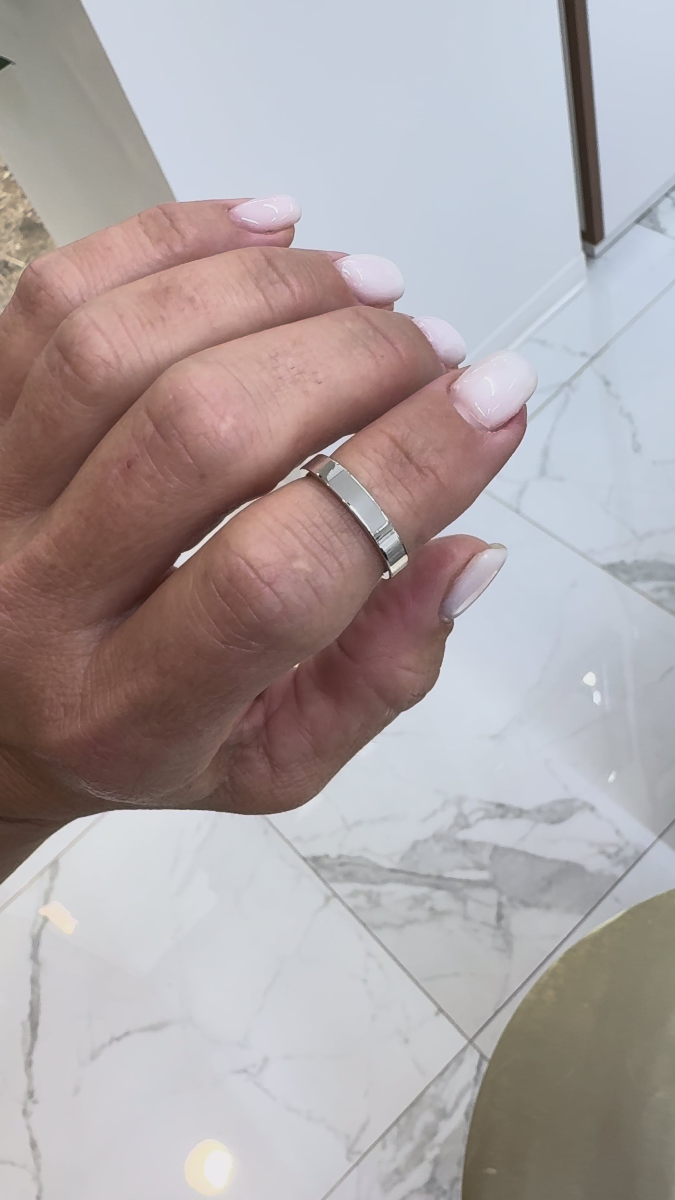 Ladies Tiffany & Co. 950 platinum soft-square wedding band with a soft-square shank. Engraved with "PT950". The "Tiffany & Co." trademark (or hallmark) can also be found on the item.