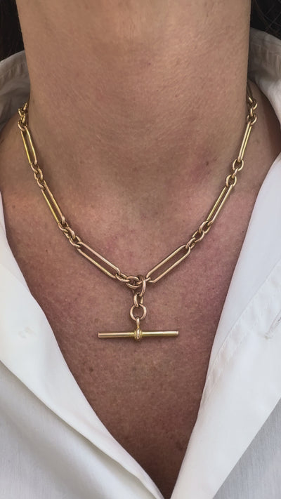 Antique Victorian 9K 375 Gold Watch Chain Paper Clip Link Necklace