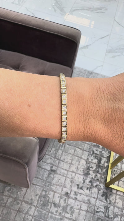 Antique 14K Yellow Gold Diamond Filigreed Square Link Tennis Bracelet
