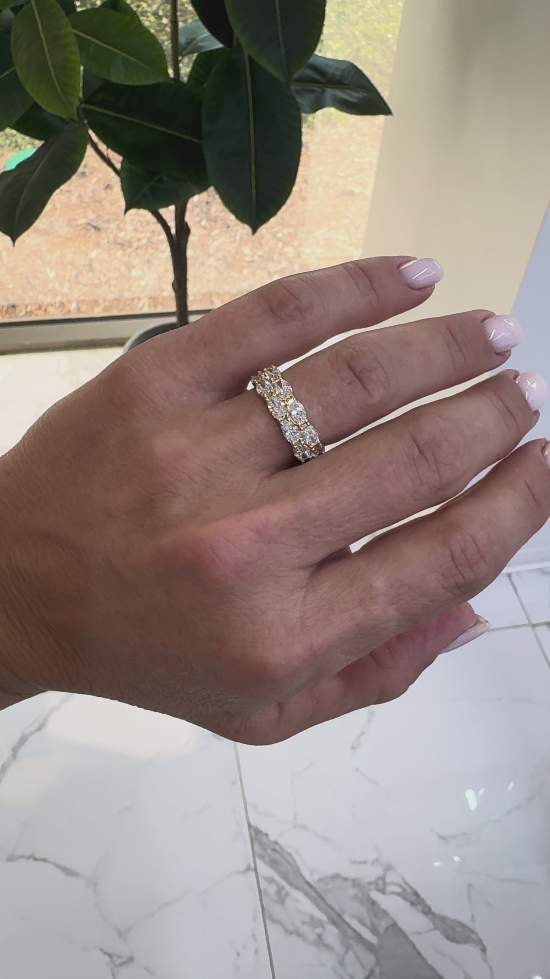 18K Yellow Gold 4.84ct Oval Lab Diamond North South Double Eternity Band Ring