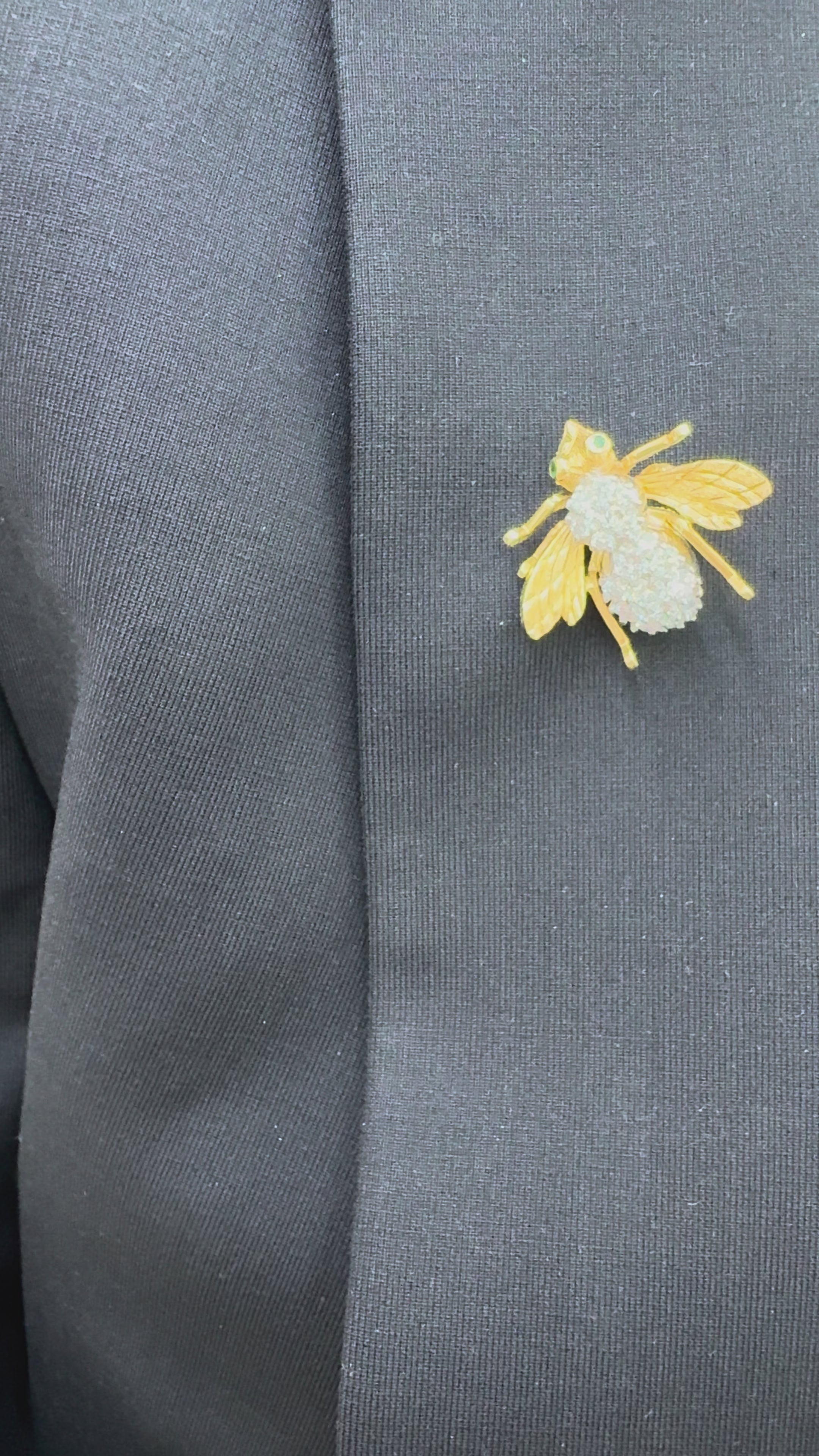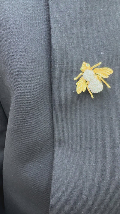 Vintage Herbert Rosenthal 18K Gold 2.77ct Diamond Emerald Large Bumble Bee PIN