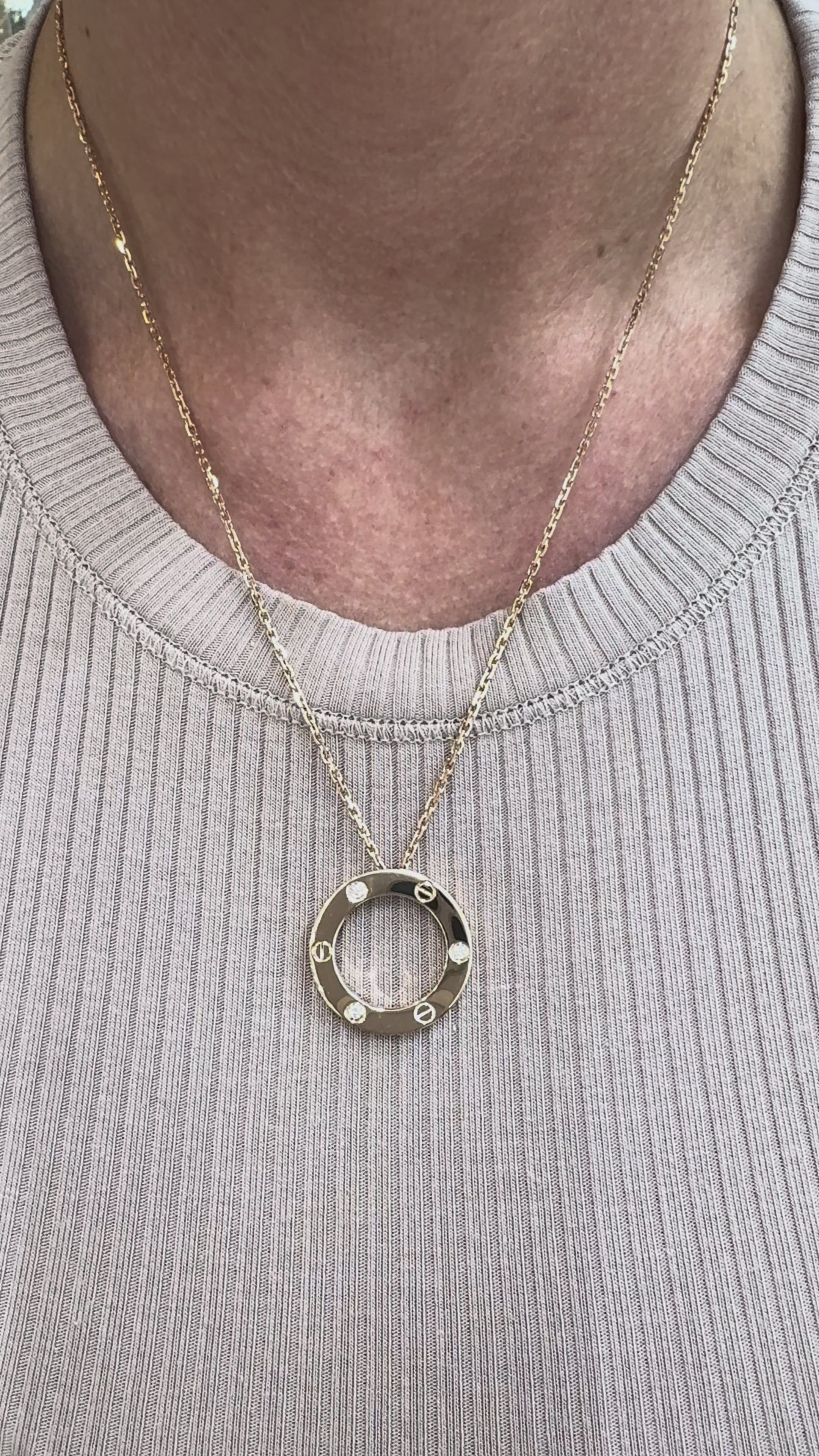 Cartier 18K Rose Gold Love Pendant 3 Diamonds Necklace