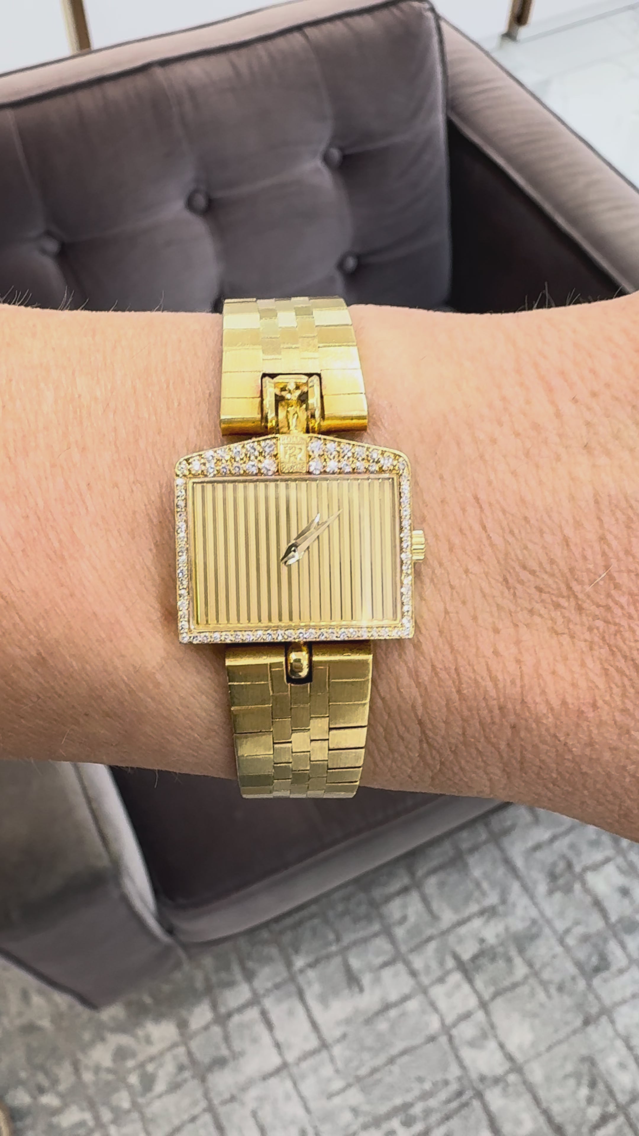 18K yellow gold diamond CORUM Swiss-made wristwatch. Engraved with "750". The "CoRuM" trademark (or hallmark) can also be found on the item.