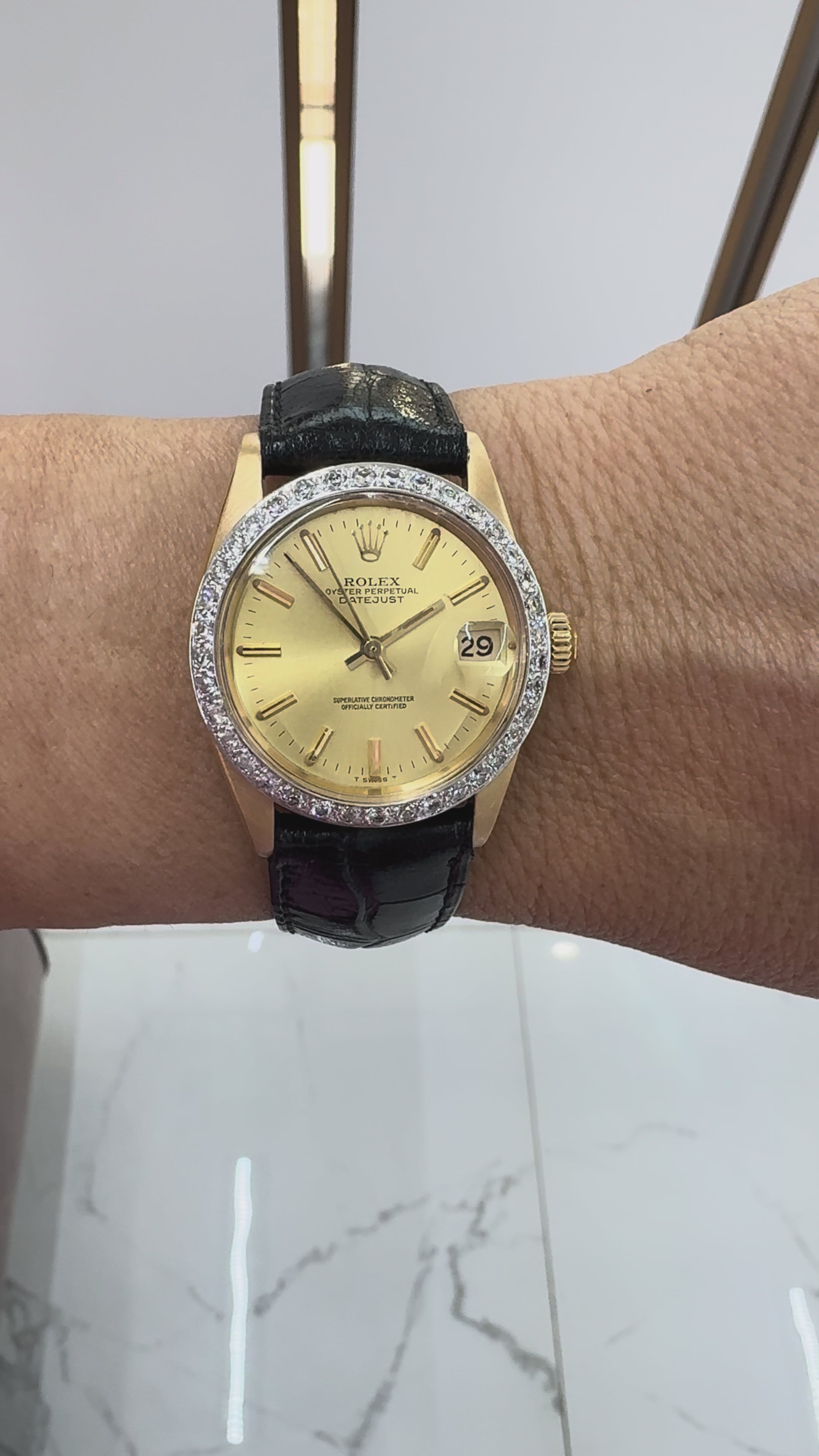 1981 Rolex Datejust 31MM 6827 Mid Size 18K Yellow Gold Diamond Bezel Watch